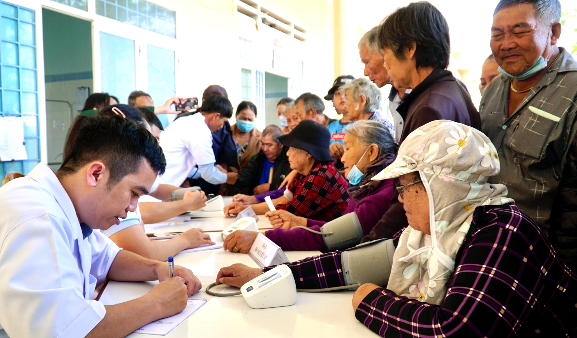 Hàng trăm người dân của phường Quy Nhơn Đông được các y, bác sĩ Bệnh viện Quân y 15 (Binh đoàn 15) thăm khám.