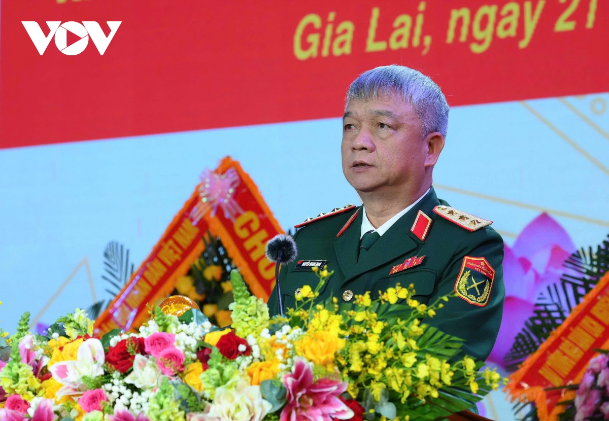 Thiếu tướng Hoàng Văn Sỹ - Tư lệnh Binh đoàn 15 phát biểu tại buổi lễ đón nhận danh hiệu Anh hùng Lực lượng vũ trang nhân dân của Binh đoàn