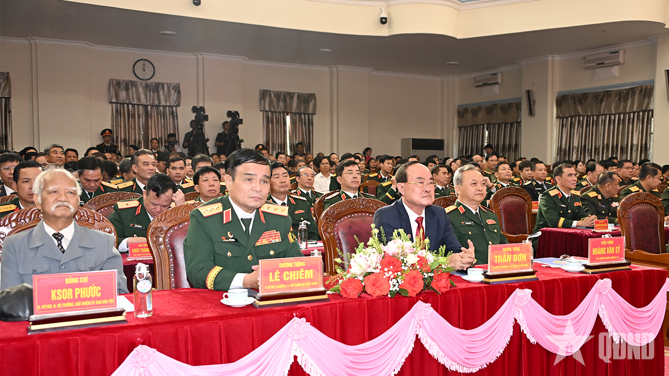 Dự buổi lễ có Thượng tướng Nguyễn Quang Ngọc, Ủy viên Trung ương Đảng, Thứ trưởng Bộ Quốc phòng; các đồng chí nguyên Ủy viên Trung ương Đảng, nguyên Thứ trưởng Bộ Quốc phòng, nguyên thủ trưởng Bộ Tổng Tham mưu; đại biểu Quân đội nhân dân Lào, Quân đội Hoàng gia Campuchia, đại biểu các cơ quan, đơn vị, học viện, nhà trường, doanh nghiệp, lãnh đạo Binh đoàn 15 và cấp ủy, chính quyền địa phương…