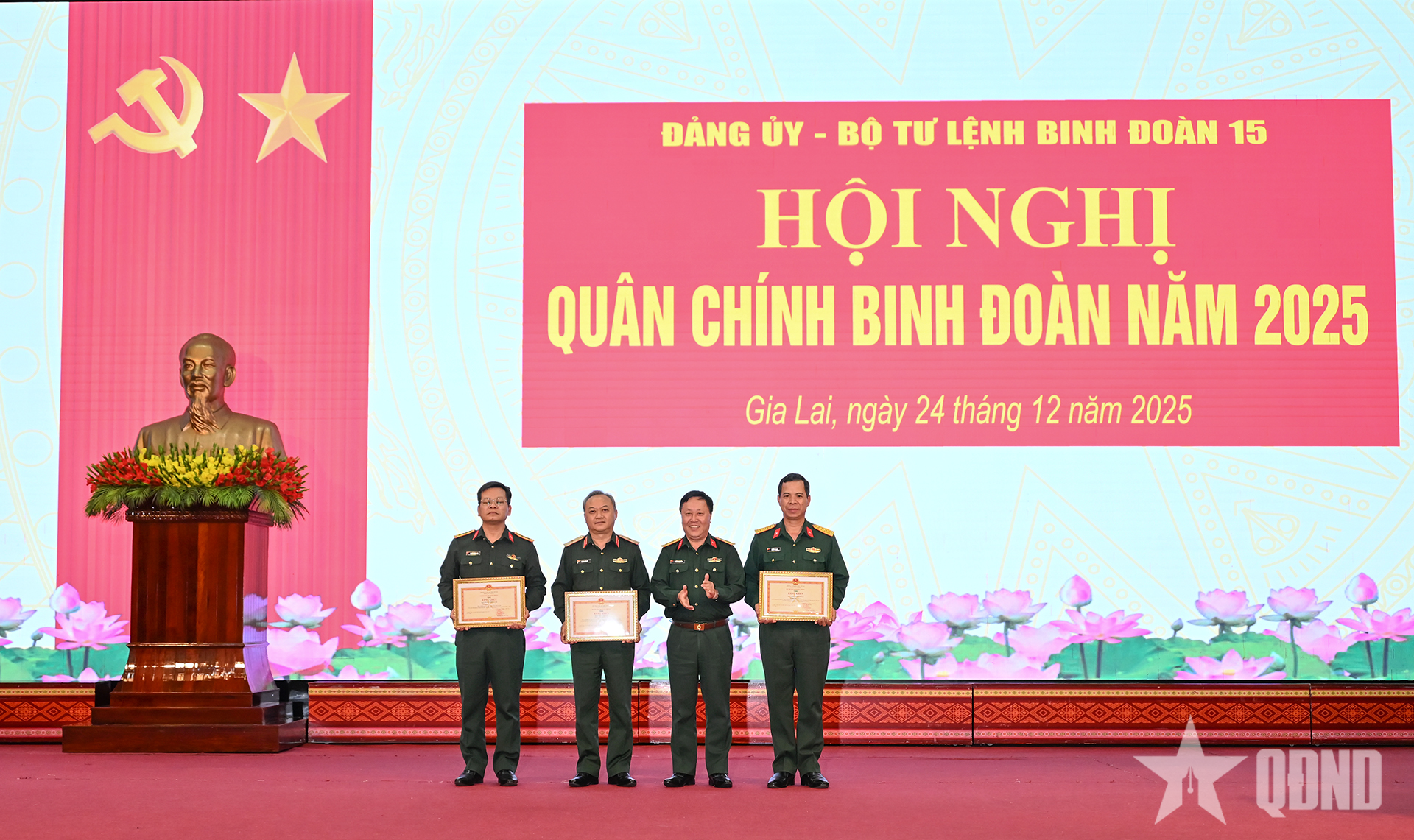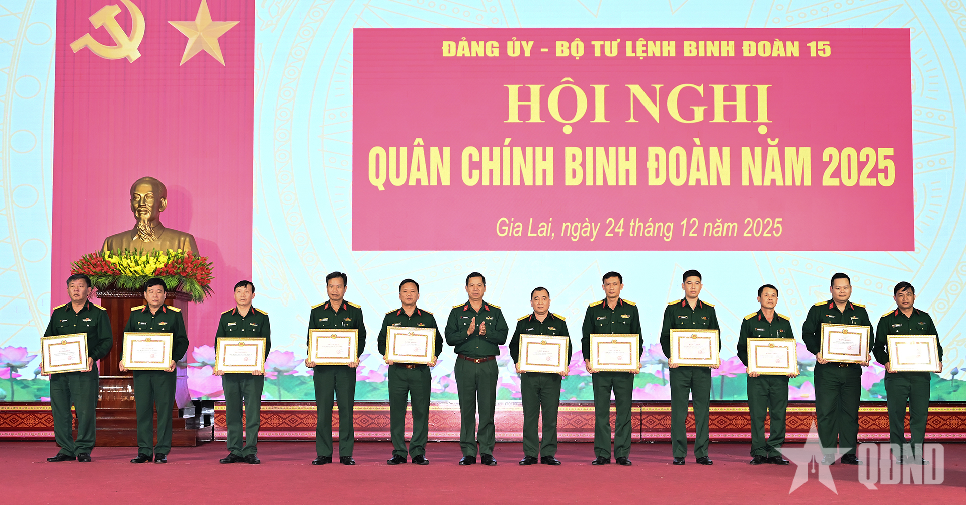 Tại hội nghị, Binh đoàn 15 đã phát động Phong trào Thi đua Quyết thắng năm 2026 với chủ đề “Đoàn kết, kỷ cương, đột phá, sáng tạo, Quyết thắng”; trao các phần thưởng của Bộ Quốc phòng và Binh đoàn 15 tặng các tập thể, cá nhân của đơn vị.