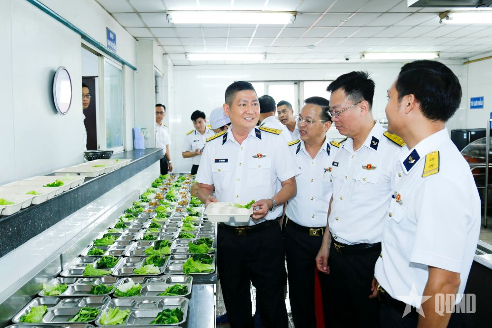 Đại tá Võ Hoài Nam kiểm tra tại bếp ăn cảng TCTT.