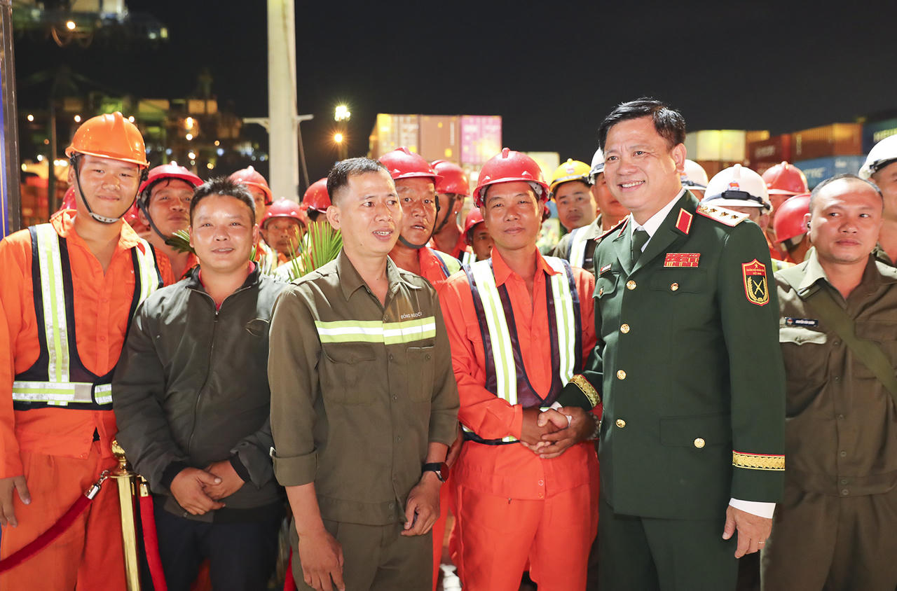 Thượng tướng Nguyễn Trường Thắng thăm hỏi chúc Tết người lao động Tân Cảng Sài Gòn tại cảng Tân Cảng - Cát Lái.