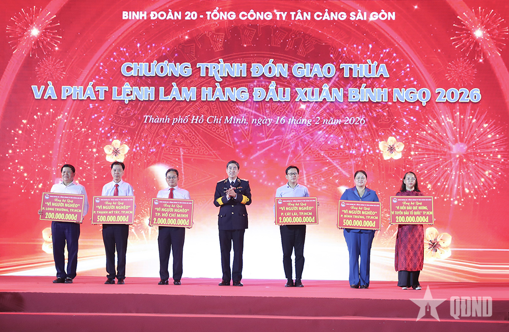 Tại buổi phát lệnh làm hàng đầu xuân Bính Ngọ, Binh đoàn 20 - Tổng công ty Tân Cảng Sài Gòn đã trao ủng hộ Quỹ “Vì người nghèo” của TP Hồ Chí Minh, các xã, phường trên địa bàn và Quỹ “Vì biển đảo quê hương” với số tiền 5,4 tỷ đồng.