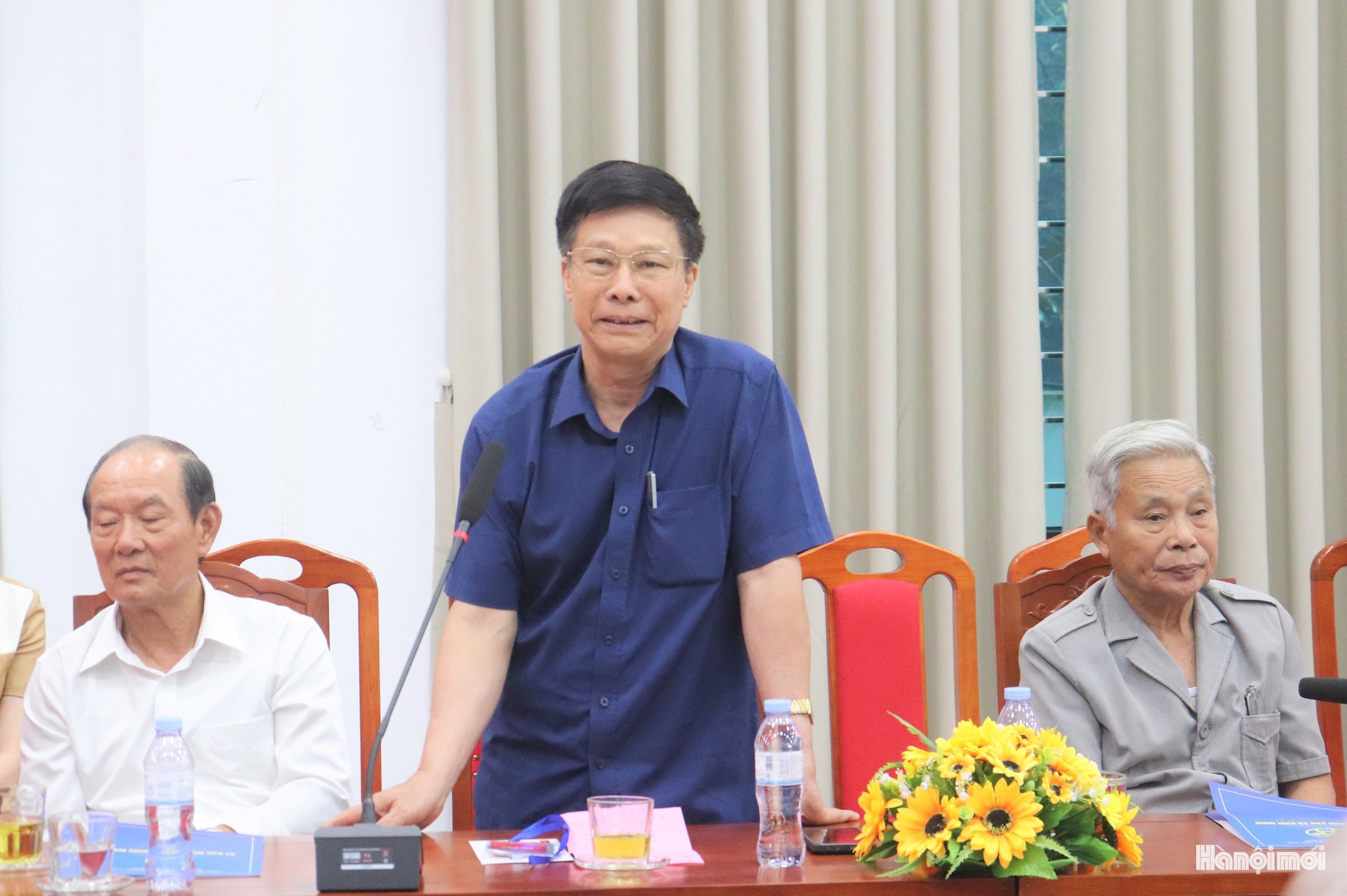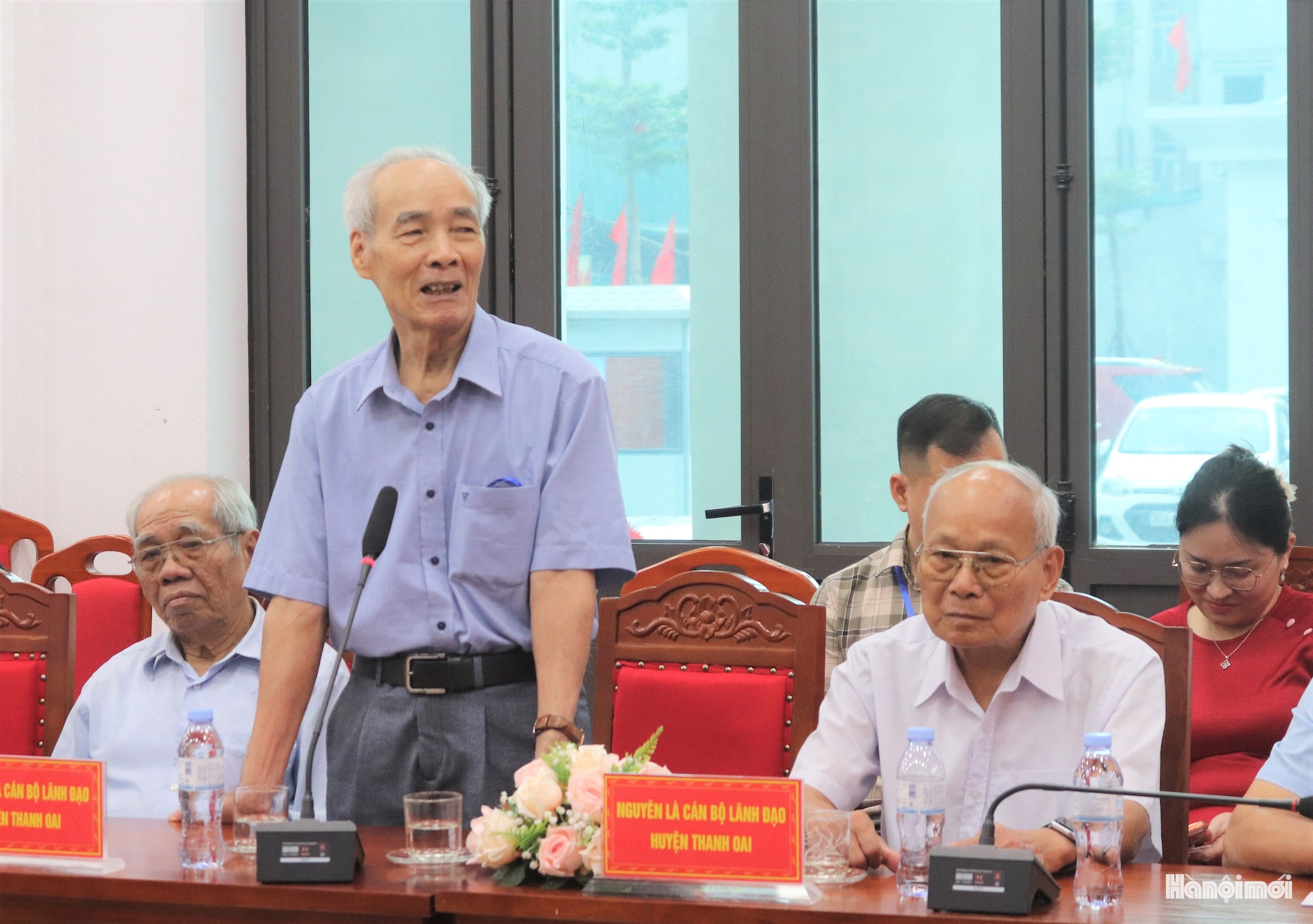 Các đồng chí nguyên lãnh đạo huyện Thanh Oai (cũ) góp ý tại hội nghị. Ảnh P.V