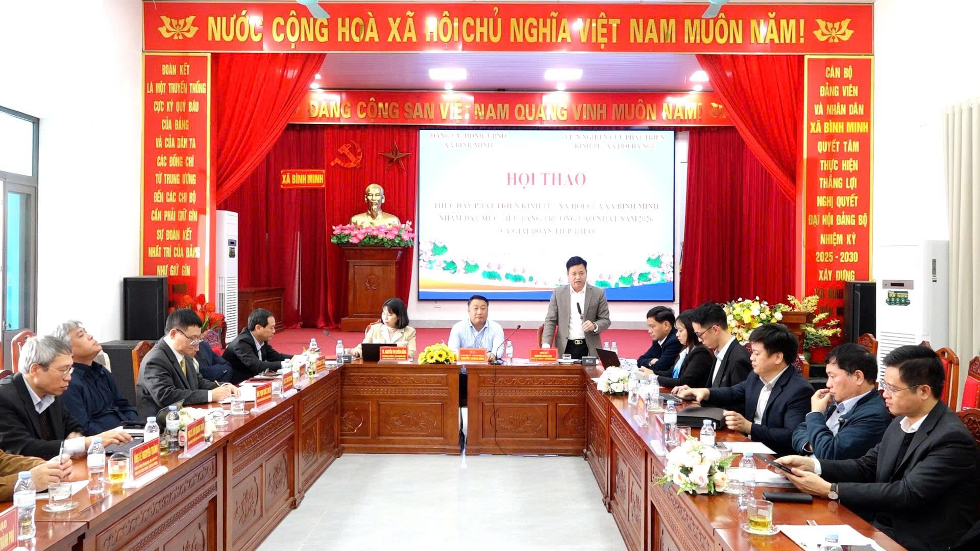 Tại hội thảo, Bí thư Đảng ủy xã Bình Minh Nguyễn Khánh Bình nhấn mạnh, Bình Minh là địa bàn có vị trí chiến lược đặc biệt quan trọng khi nằm ở cửa ngõ phía Tây Nam Thủ đô, cách trung tâm Hà Nội khoảng 15km, đồng thời là điểm giao cắt của nhiều tuyến giao thông huyết mạch, như: Vành đai 4, quốc lộ 21B, tỉnh lộ 427 và tuyến đường sắt Bắc - Nam. Đây là lợi thế lớn để địa phương phát triển công nghiệp, thương mại - dịch vụ, logistics và thu hút đầu tư.