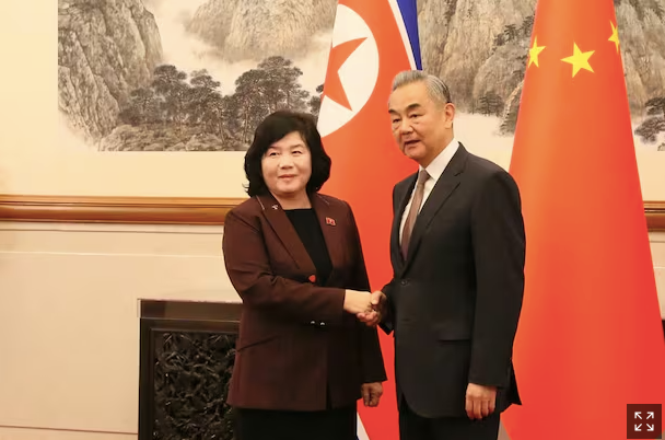 Bộ trưởng Ngoại giao Triều Tiên Choe Son Hui ( trái) và Bộ trưởng Ngoại giao Trung Quốc Vương Nghị. Ảnh: Rodong Sinmun