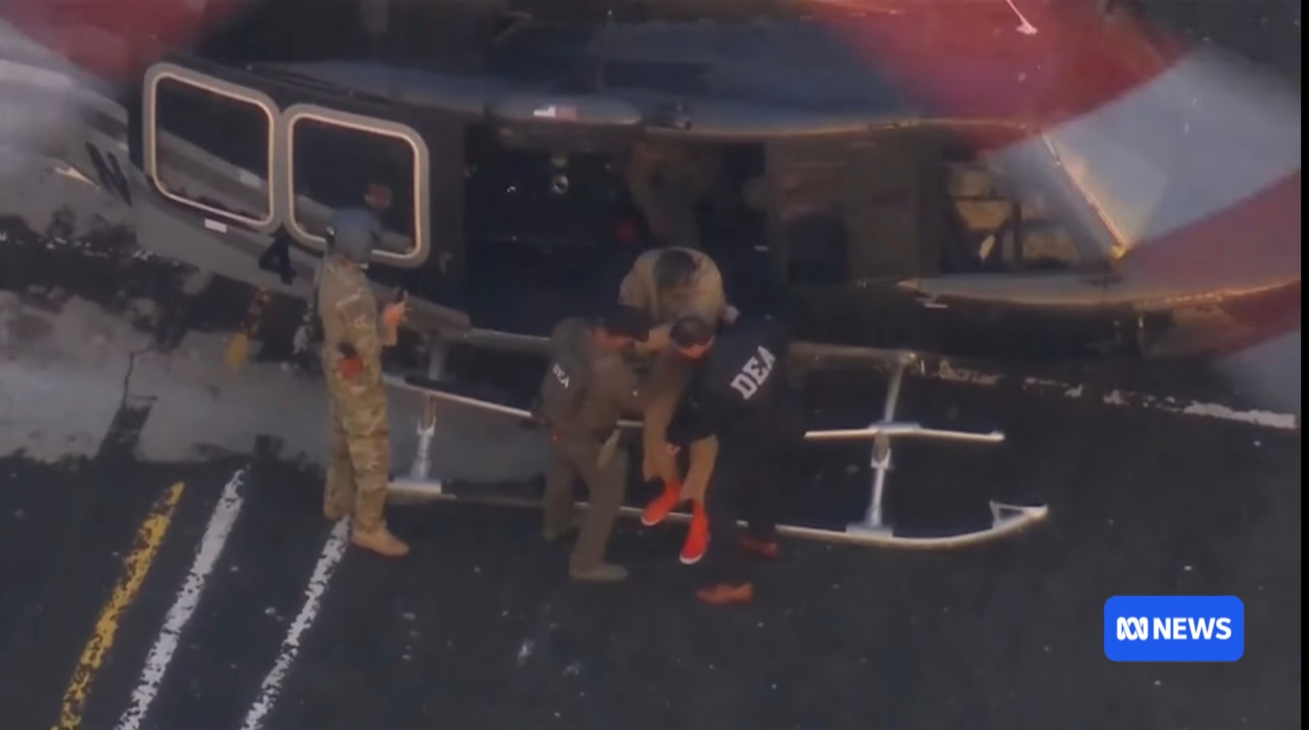Binh sĩ Mỹ áp giải Tổng thống Venezuela Nicolás Maduro trên đường đến tòa án. Ảnh: Truyền hình Australia ABC