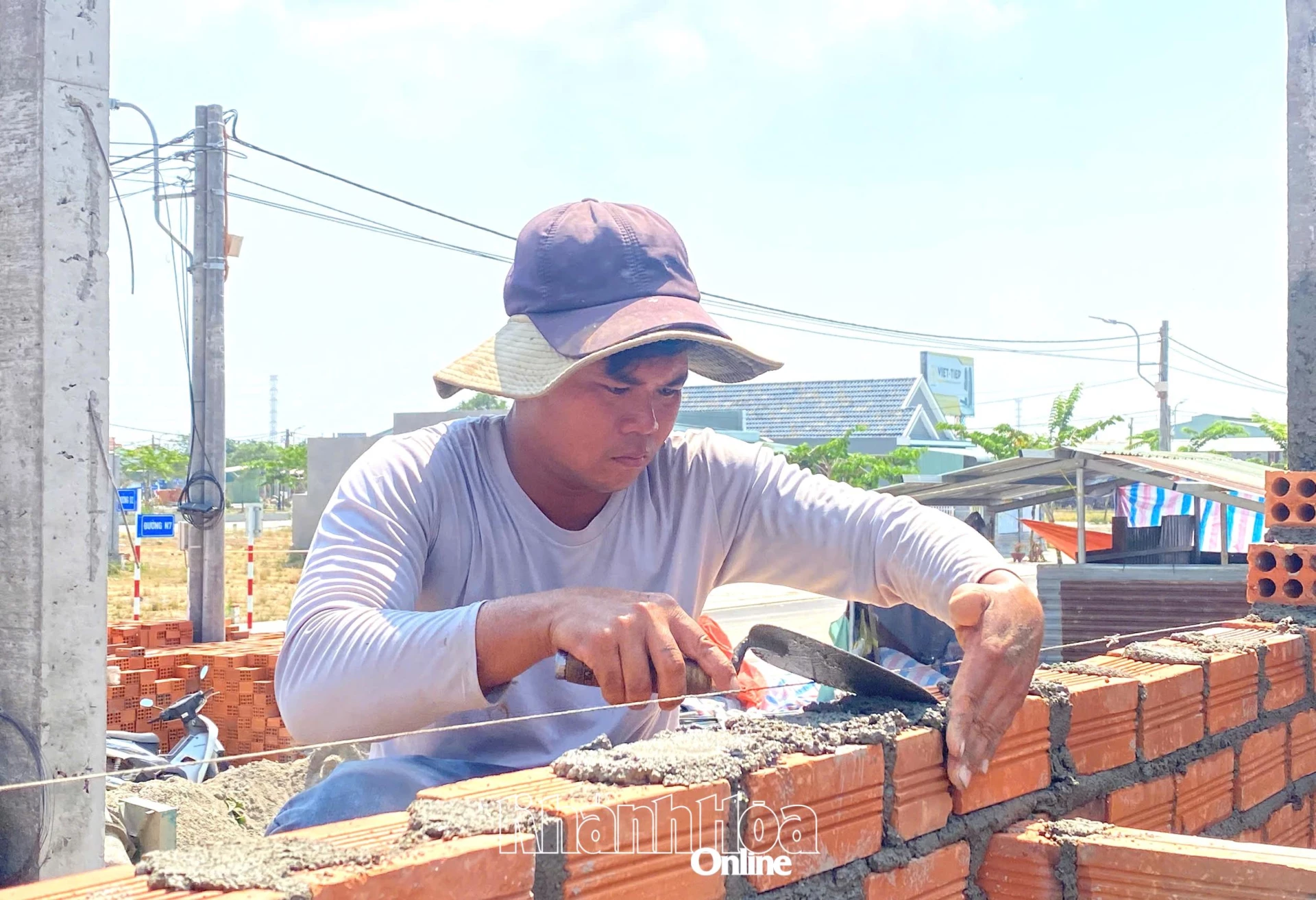Người thợ cần mẫn xây ngôi nhà mới ở Khu tái định cư Hà Thanh.