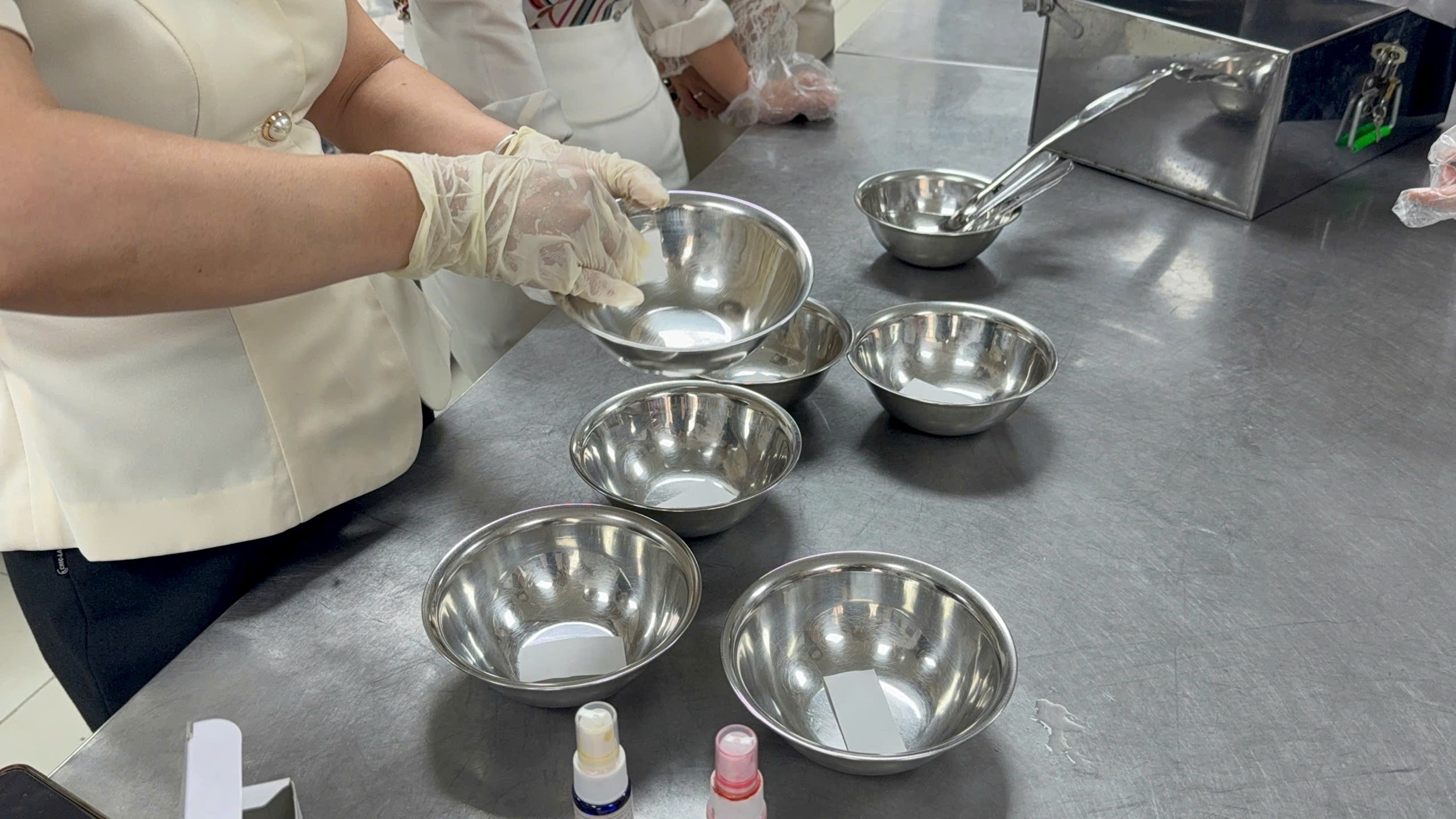 Kiểm tra bát ăn tại bếp ăn trường học. Ảnh: Hoa Thành