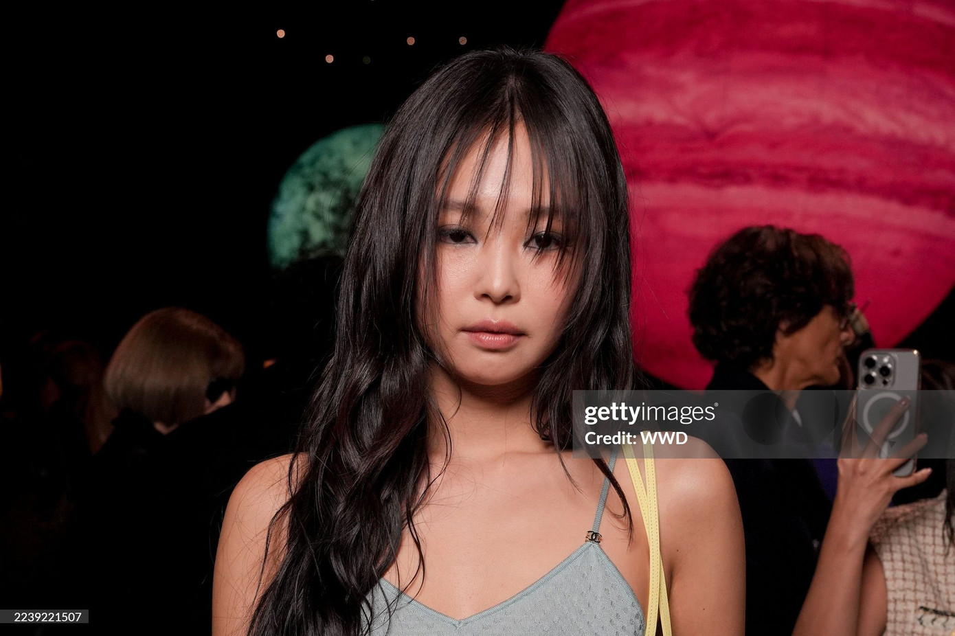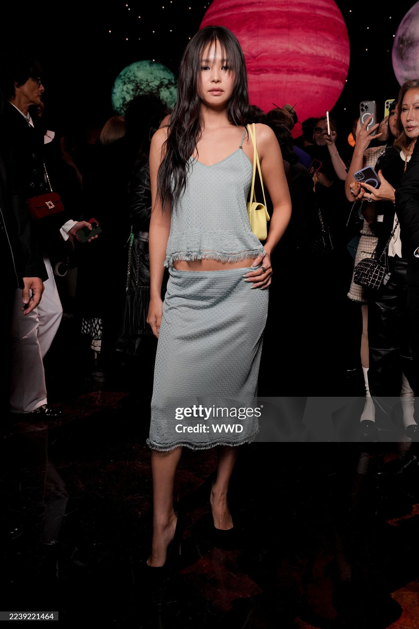 Trong show diễn đầu tiên của Matthieu Blazy với tư cách Tân giám đốc sáng tạo Chanel, IT Girl xứ Hàn ngồi hàng ghế đầu, diện bộ trang phục lụa màu xanh dương gồm áo hai dây và chân váy midi, phối cùng túi mini vàng chanh. Jennie hoàn thiện diện mạo với make-up tông khói sắc sảo cùng kiểu tóc buông xõa tự nhiên.