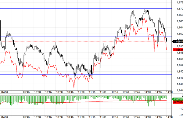 Thị trường phái sinh hôm nay có một nhịp giảm và một nhịp hồi khá chuẩn, từ 1861.xx xuống 1849.xx và quay lên 1870.xx Tuy nhiên nhịp giảm buổi sáng hơi khó chịu vì basis chiết khấu rộng khiến dư địa cho Short quá nhỏ, dễ bị “nổ” stoploss. Nhịp lên thì ngon ăn hơn, trước khi VN30 bật ngược từ 1849.xx thì basis đã co lại rất nhanh, thanh khoản khá cao. Loạt trụ sau đó hồi lên từ đầu giờ chiều, các nhịp “pull back” đều ngắn và hẹp trước khi chỉ số lên tới 1870.xx. Nếu chú ý sẽ thấy basis bắt đầu mở rộng chiết khấu ở lần đầu tiên chạm tới 1870.xx và nhịp rướn thứ hai là khu vực để “dính” các lệnh Short treo sẵn trước khi các trụ bị ép xuống lần nữa.
