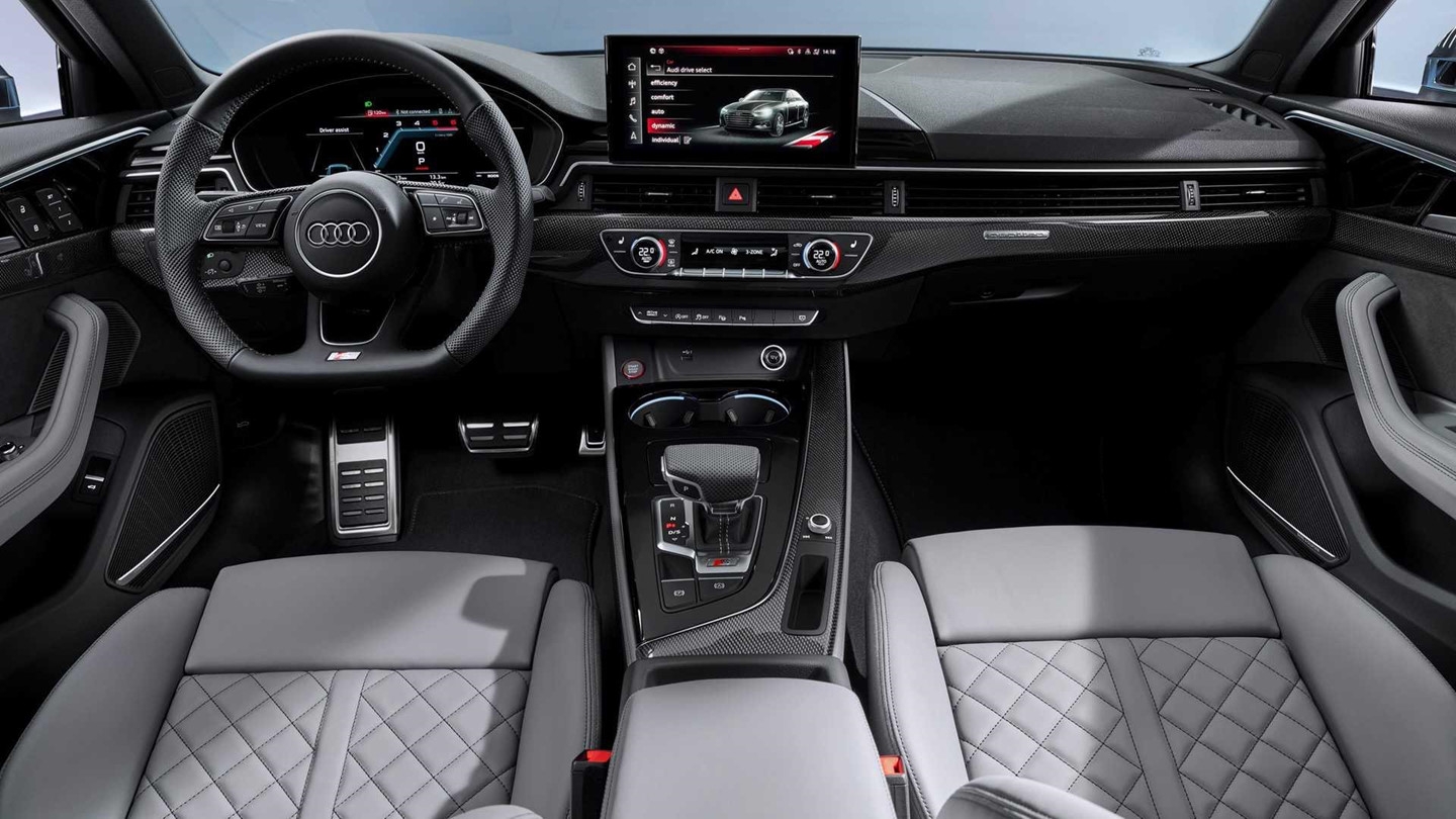 Audi A4 (hoặc A5) minimalist, với đèn LED matrix, nội thất yên tĩnh, màn hình 10,1 inch thân thiện.