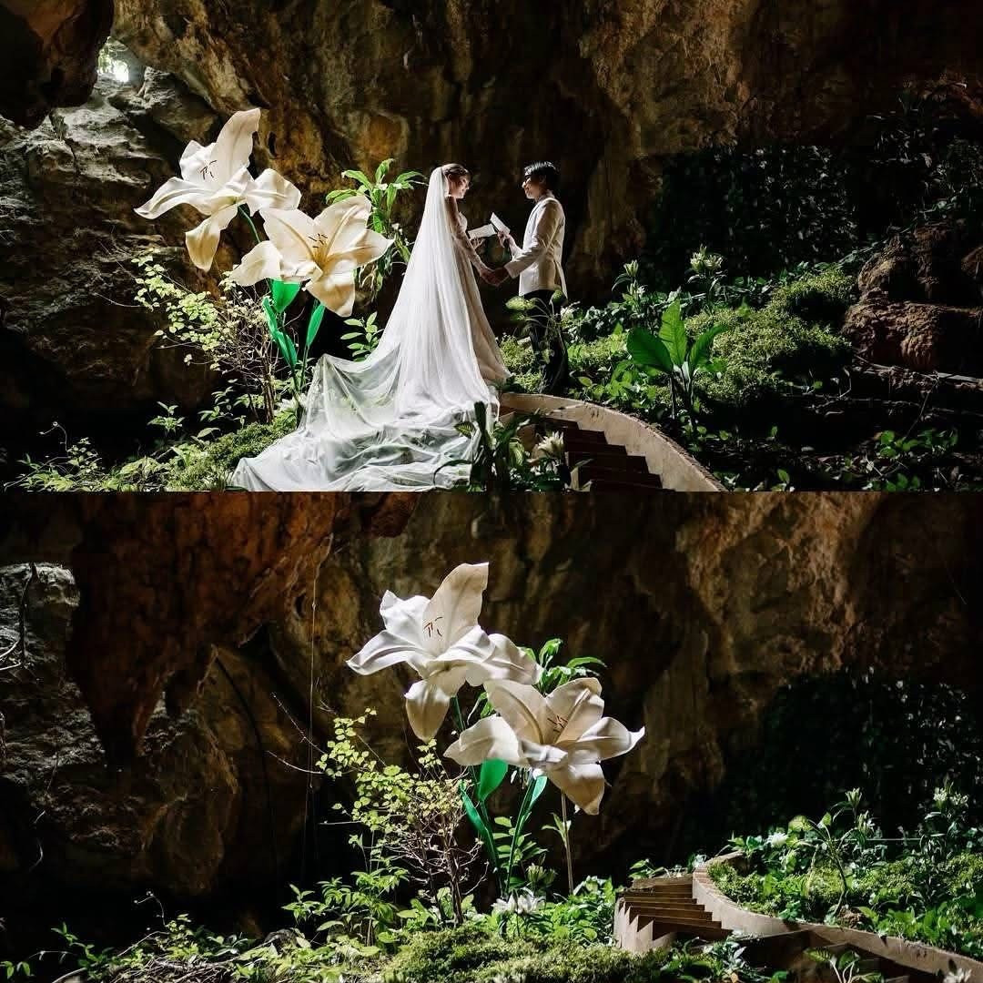 Ekip chụp ảnh đã biến Hang Ngọc Rồng thành một không gian cưới lộng lẫy và huyền bí. (Ảnh: Niên và Katia)