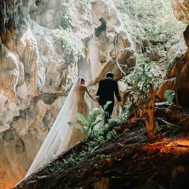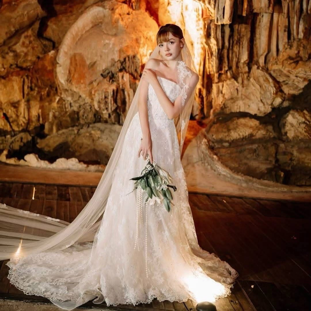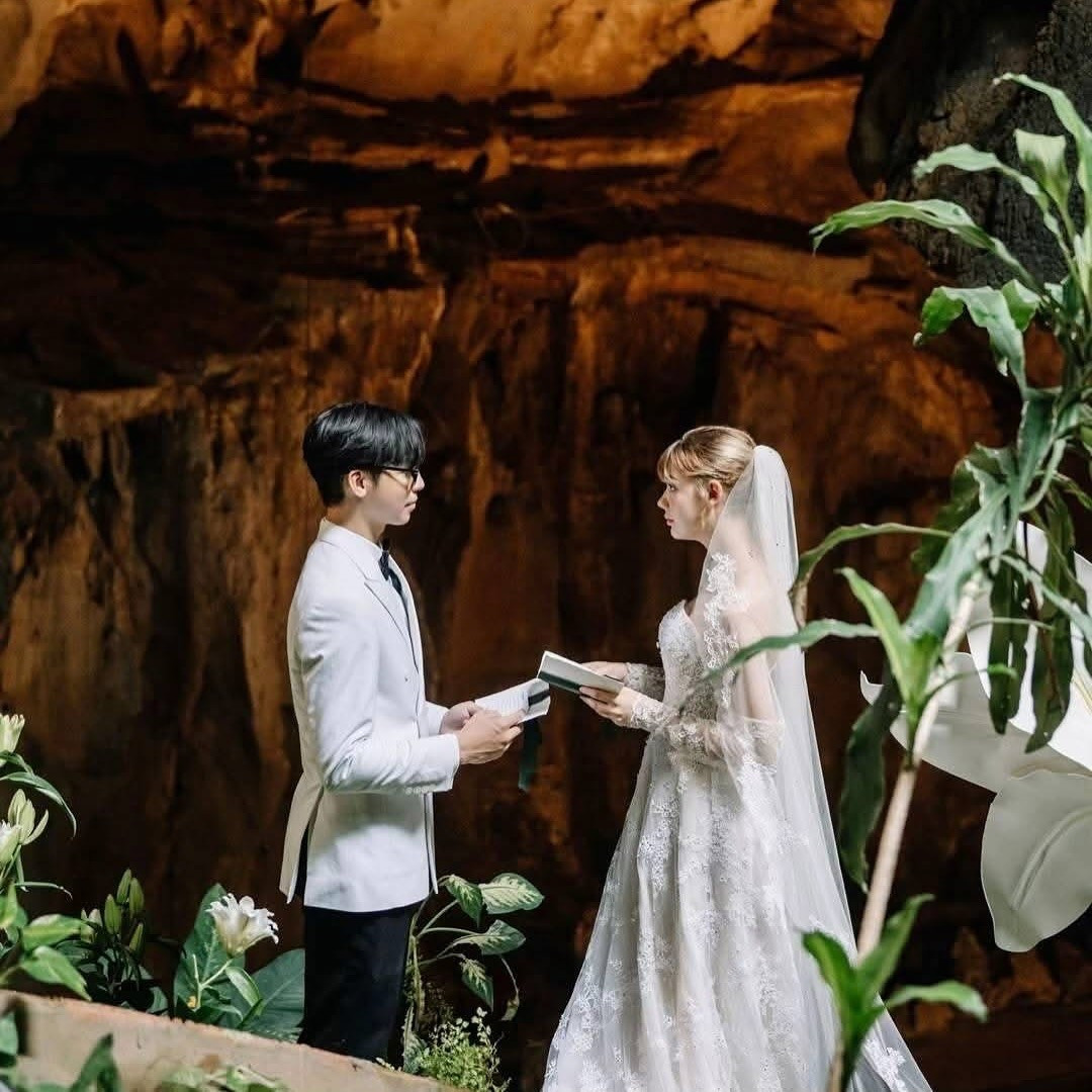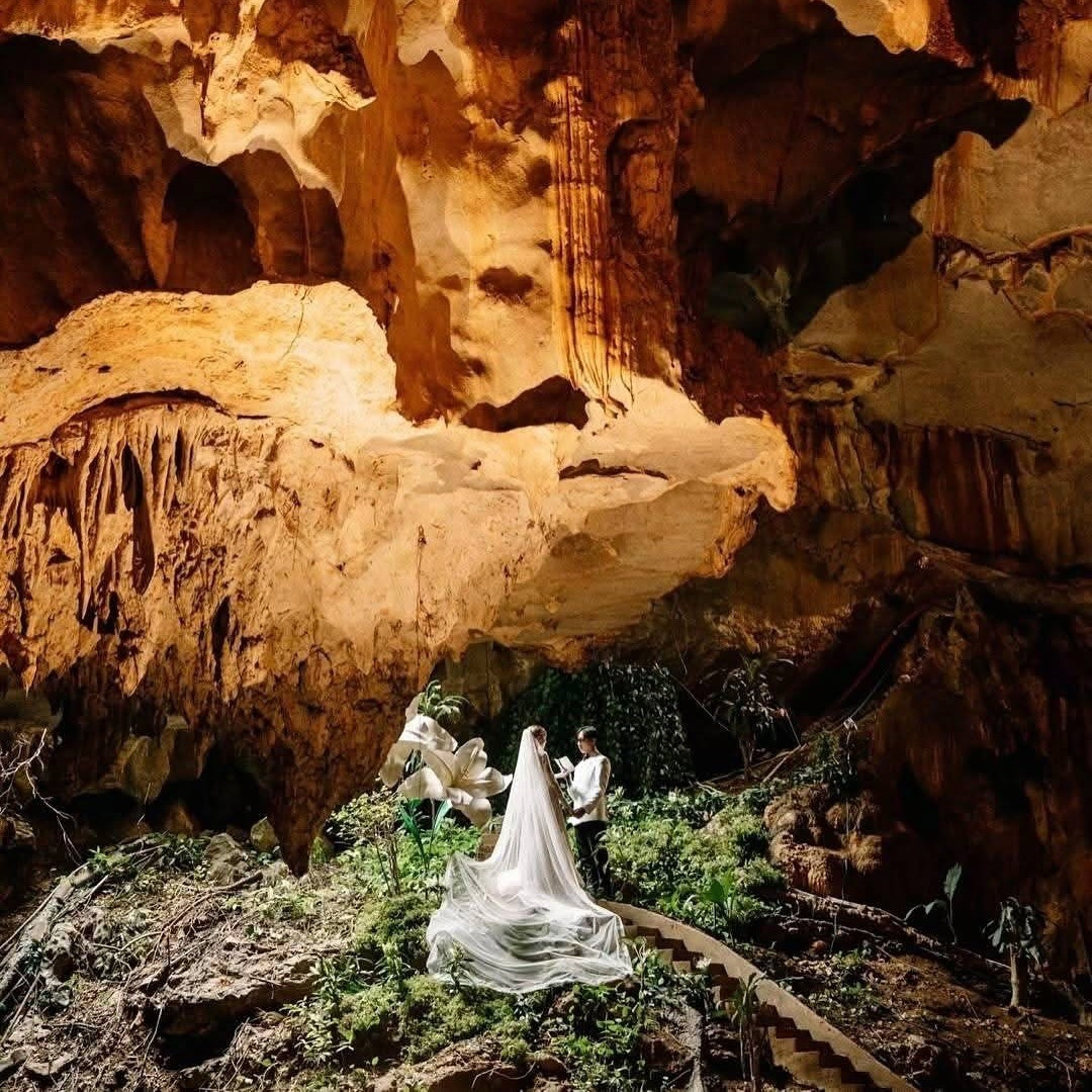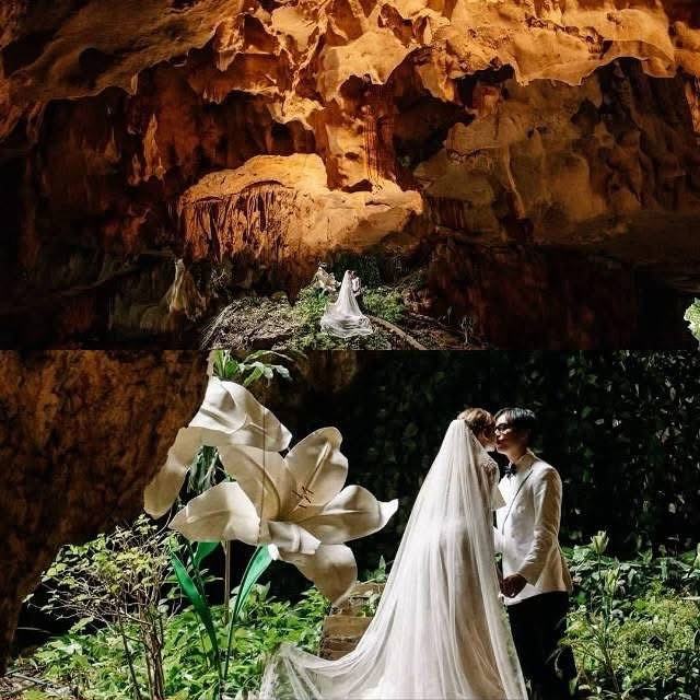 Mới đây, loạt ảnh cưới tuyệt đẹp của một cặp đôi đang chiếm sóng mạng xã hội với vô số lời khen ngợi. Đây là bộ ảnh của cặp đôi chú rể Niên (người Việt Nam) và cô dâu Katia (người Nga), được thực hiện tại một địa điểm vô cùng độc đáo: hang Ngọc Rồng, Quảng Ninh, Việt Nam.(Ảnh: Niên và Katia)