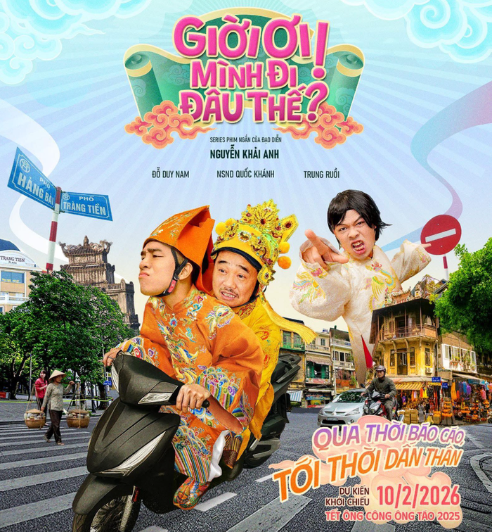 Cụ thể, kèm theo hình ảnh poster phim, nghệ sĩ Quang Thắng viết: "Chính thức: Dân tình phát sốt trước thông tin bộ ba Nam Tào - Bắc Đẩu - Ngọc Hoàng tái xuất với một nhiệm vụ hoàn toàn mới trong series phim ngắn Giời Ơi! Mình Đi Đâu Thế?".