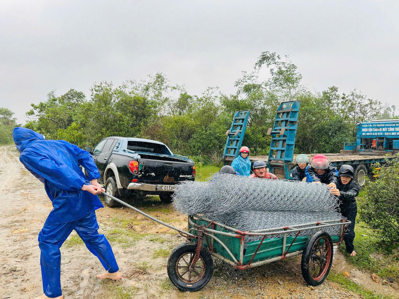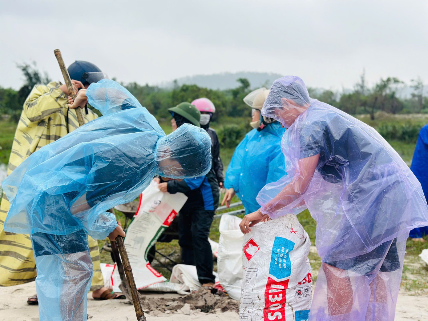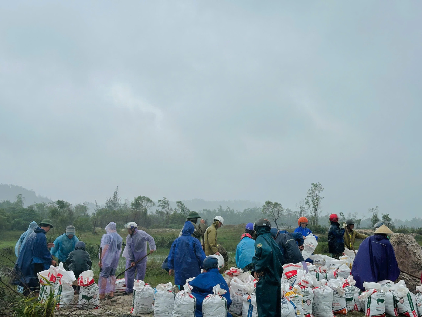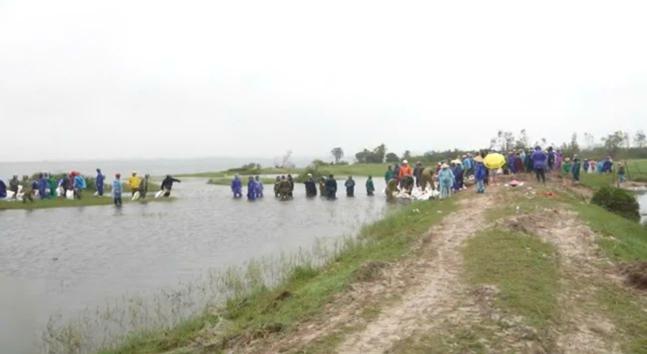 Xã Thạch Khê đã huy động lực lượng sử dụng bao cát, cọc tre, cọc gỗ gia cố tạm thời vị trí sạt lở, ngăn nước chảy ra ngoài.