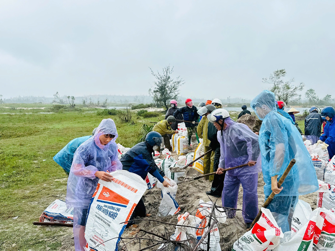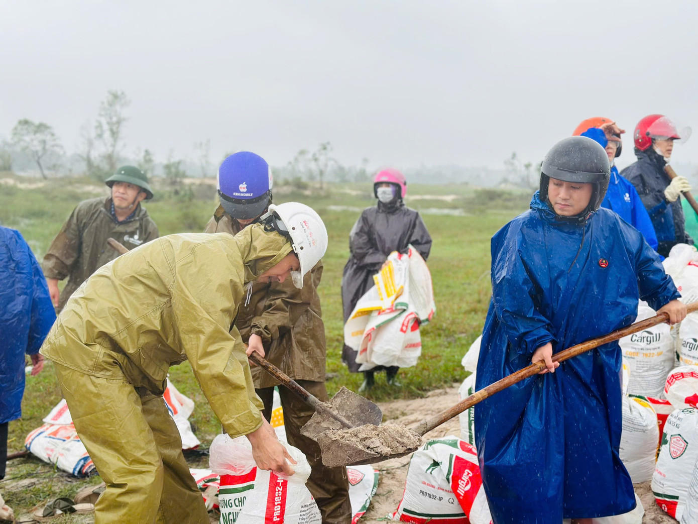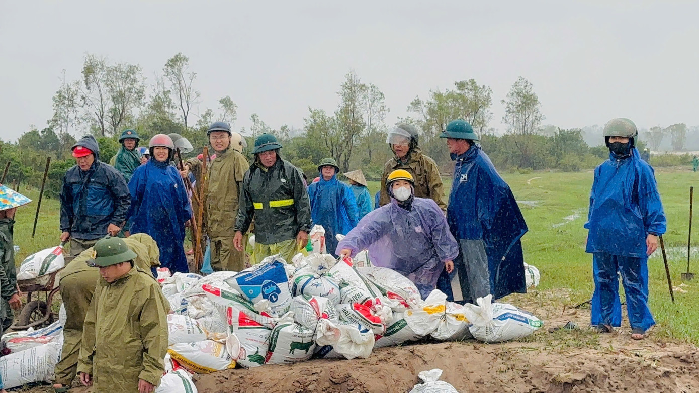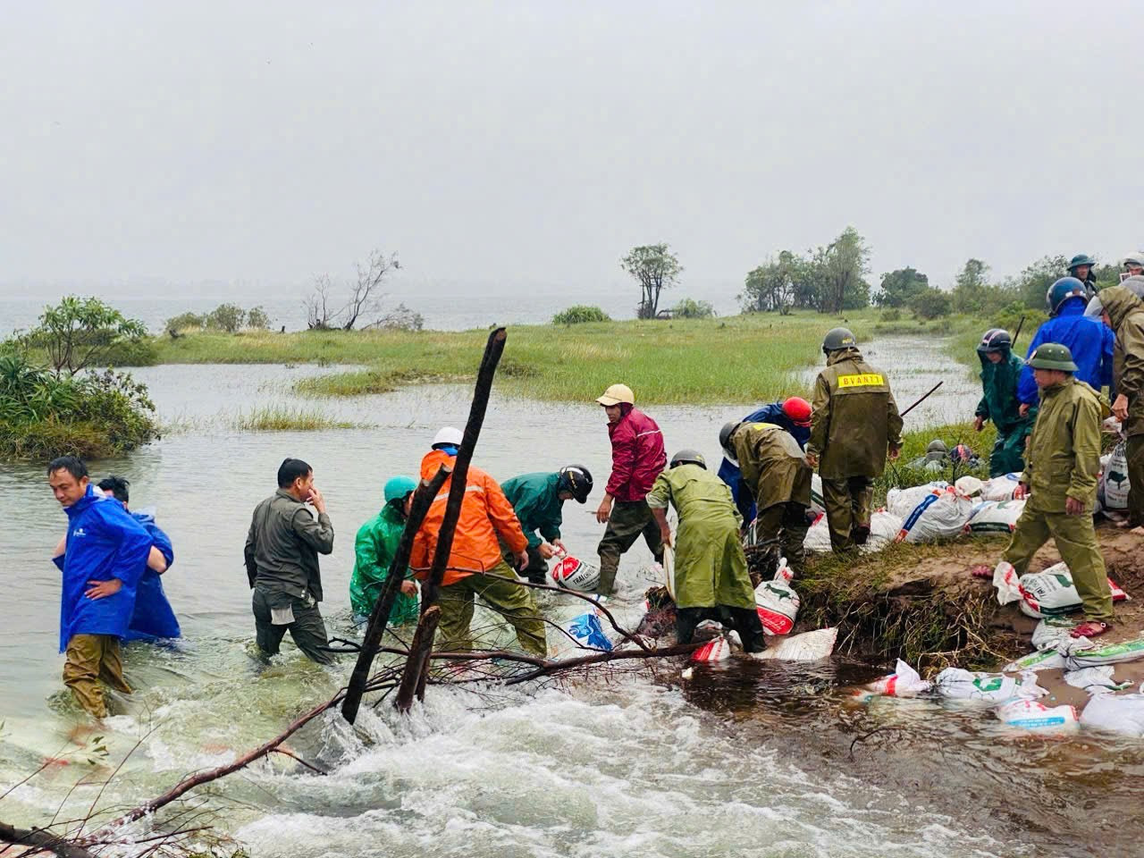 Xã Thạch Khê đã huy động lực lượng sử dụng bao cát, cọc tre, cọc gỗ gia cố tạm thời vị trí sạt lở, ngăn nước chảy ra ngoài.