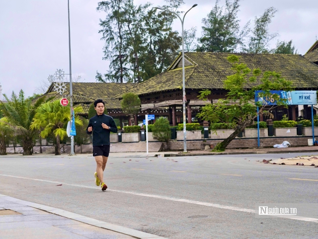 Người dân tập thể dục, đi lại, vui chơi dọc bờ biển.
