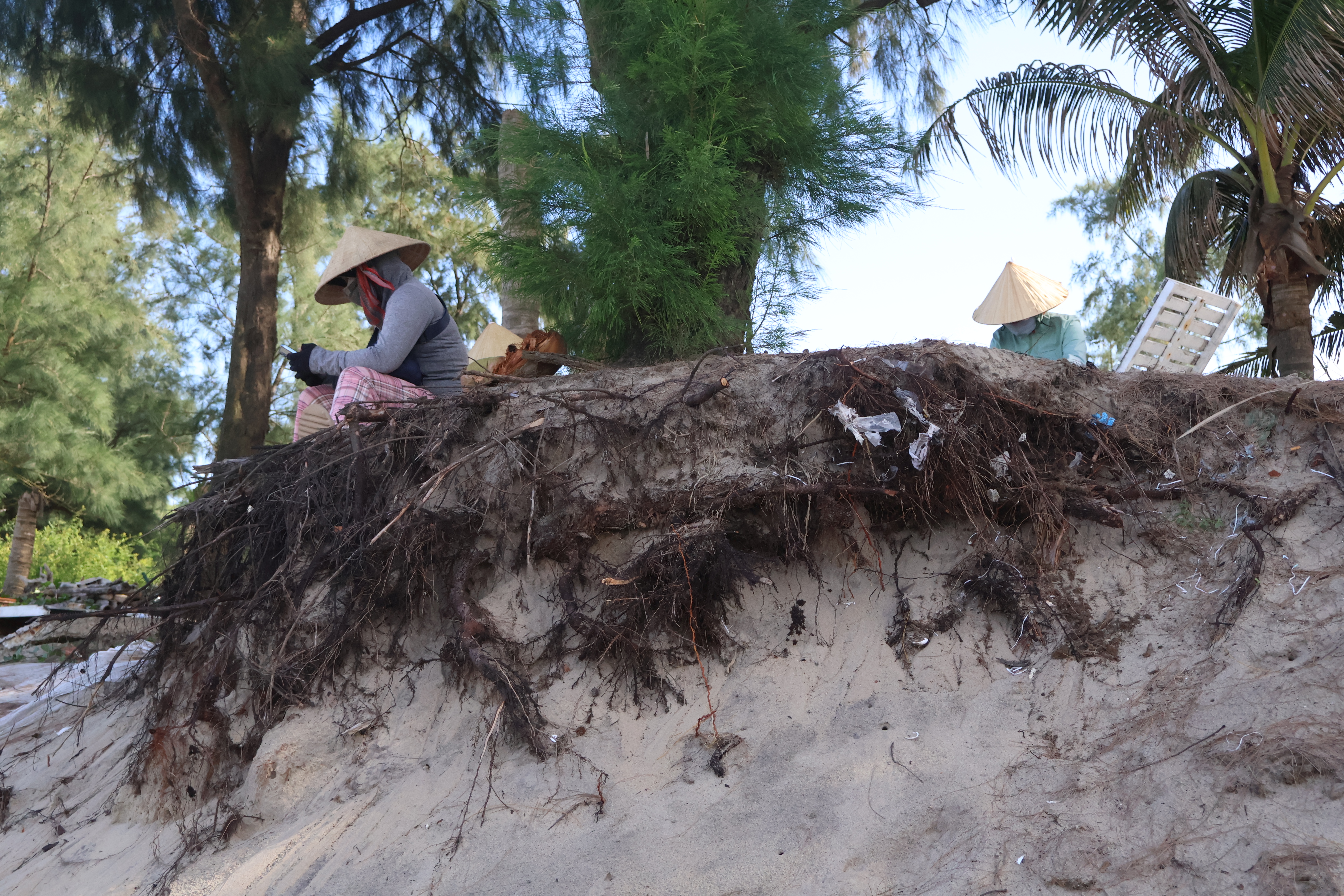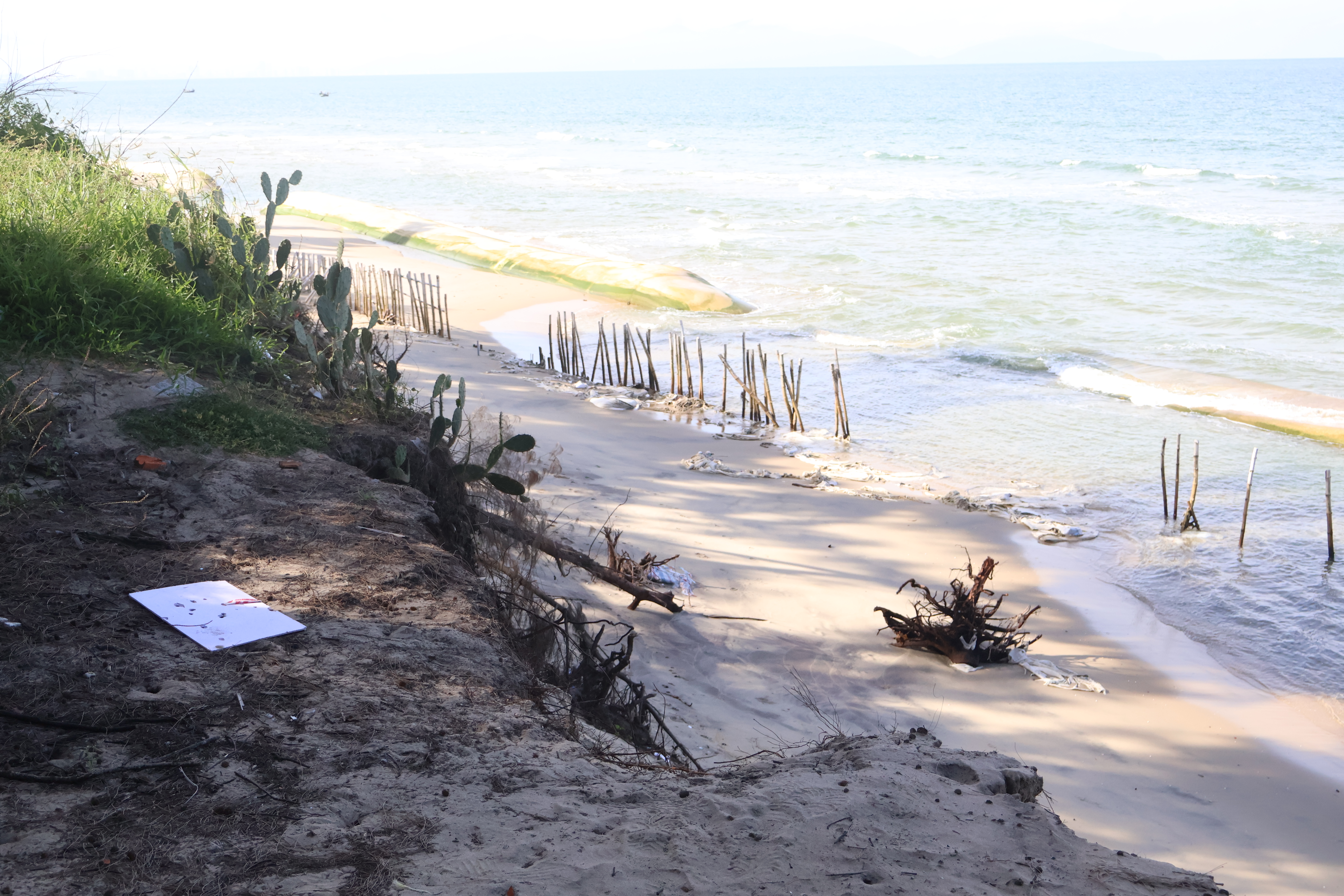 Theo người dân, đợt mưa lớn vừa qua khiến một lượng cát lớn bị cuốn đi, dẫn đến tình trạng xâm thực diễn ra bất thường và nhanh hơn những năm trước. Nếu không có biện pháp kè chắn lâu dài, vào mùa mưa bão, tình trạng xói mòn, sạt lở sẽ càng nghiêm trọng hơn.