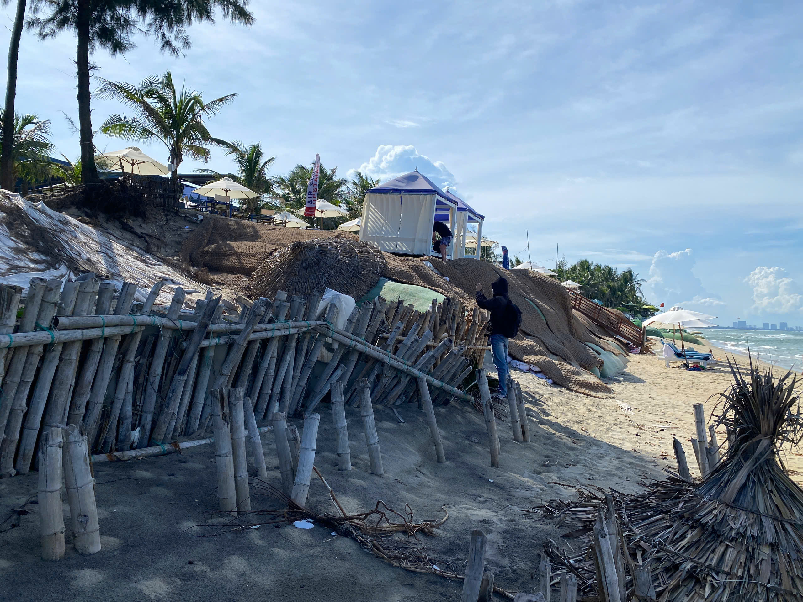 "Dù đã được gia cố tạm thời bằng cọc tre, bao cát nhưng sạt lở vẫn cứ diễn ra và ngày một nghiêm trọng hơn. Có đoạn sóng đã khoét sâu vào đất liền từ 4-8m, chỉ còn cách quán chúng tôi vài bước chân. Rất mong chính quyền có giải pháp ứng phó, để người dân an tâm kinh doanh, đảm bảo an toàn cho khách du lịch”, ông Phùng Tấn Lực cho hay.