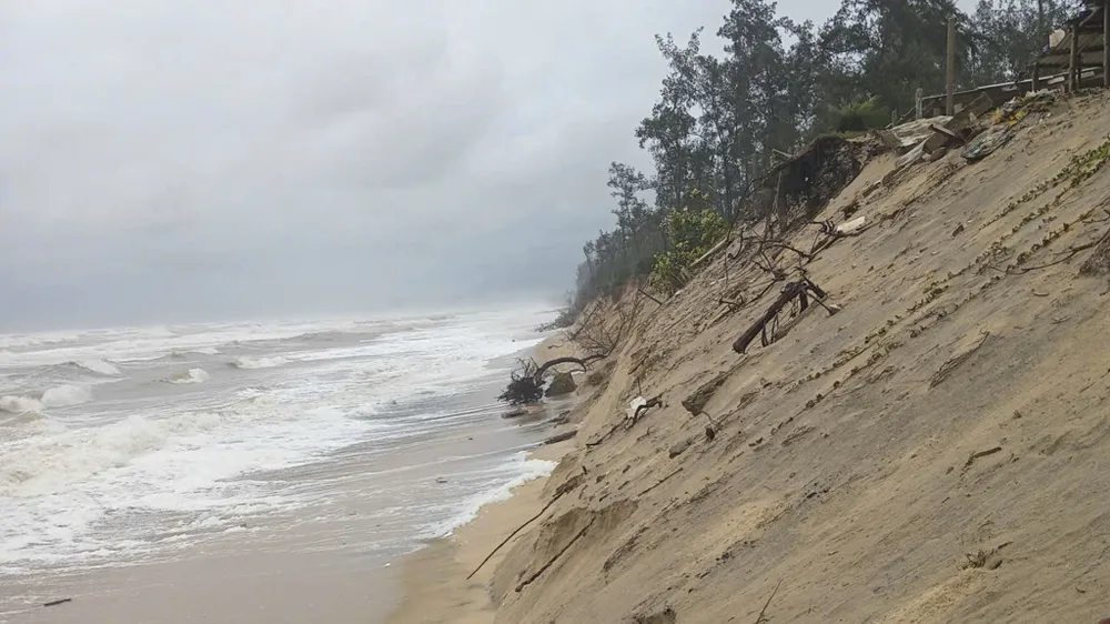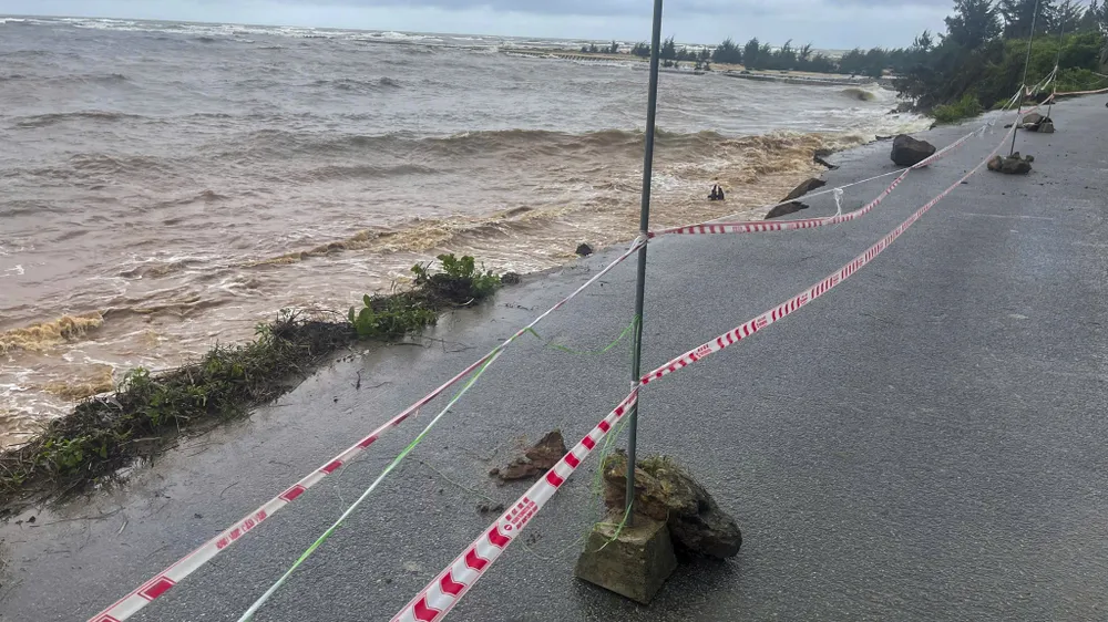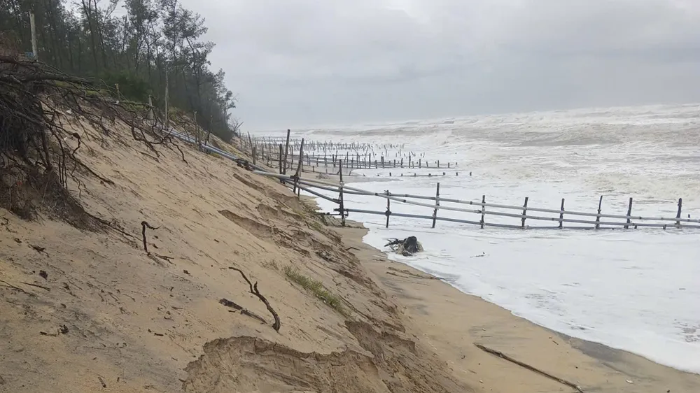 Khoảng 4,1 km bờ biển tại Vinh Lộc, TP Huế bị sóng biển xâm thực vào đất liền 4,5-7 m.