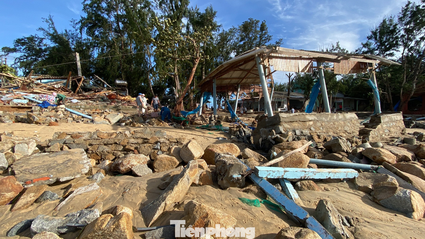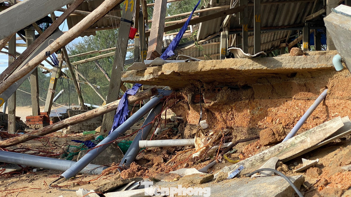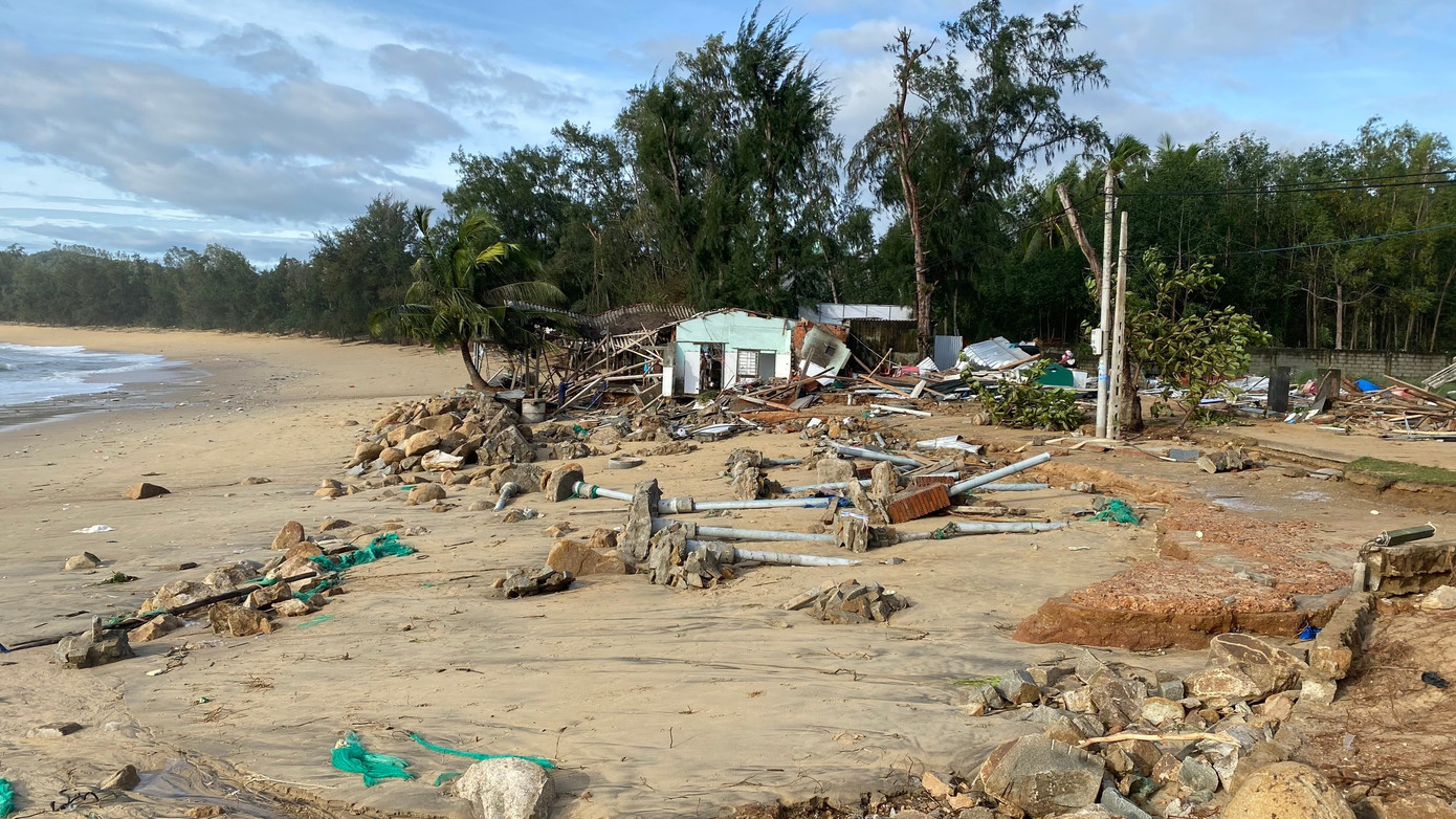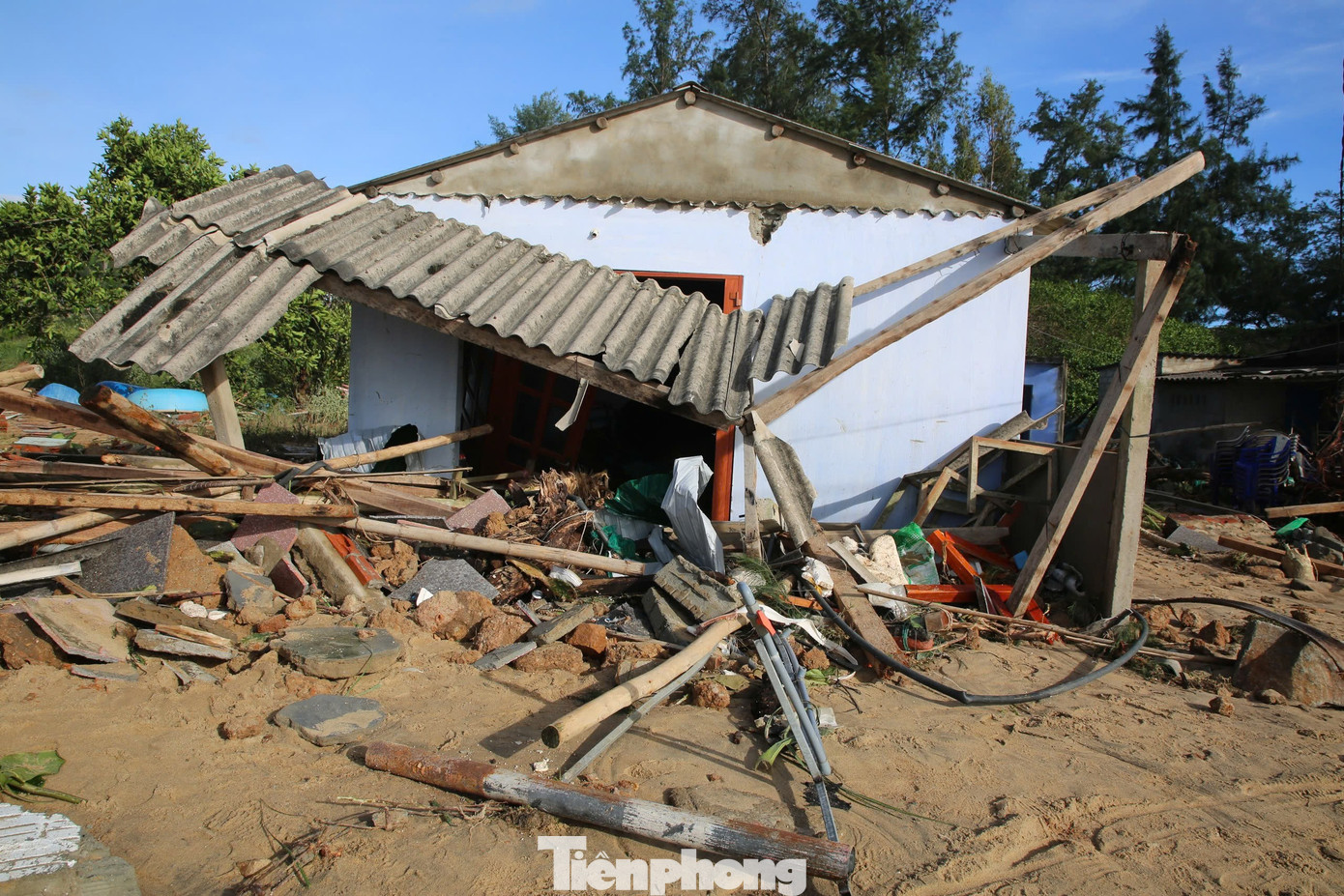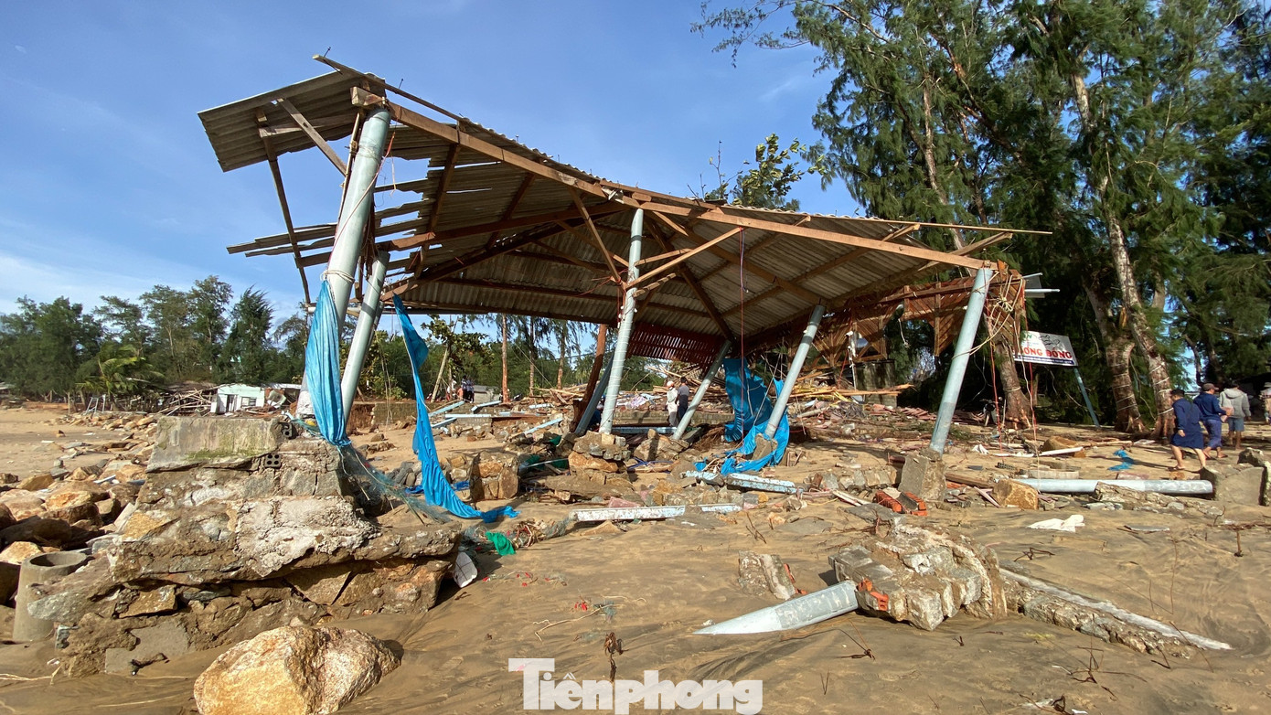 Sau những cơn triều dữ, dọc bờ biển ở phường Sa Huỳnh chỉ còn lại cảnh hoang tàn, đổ nát.