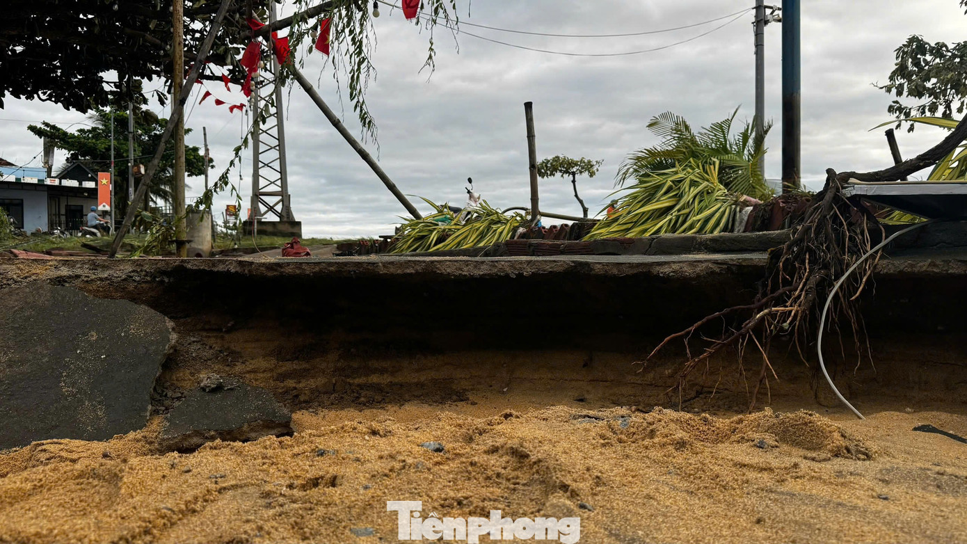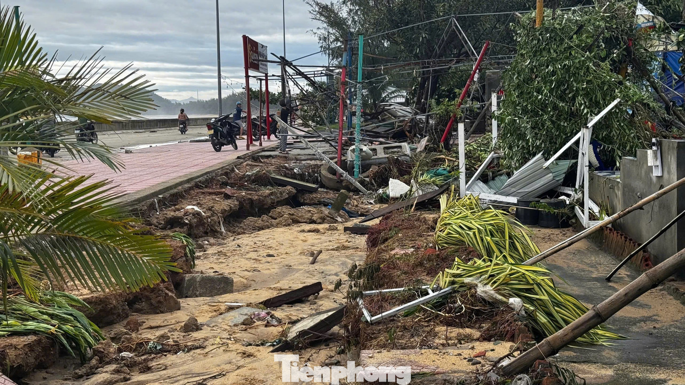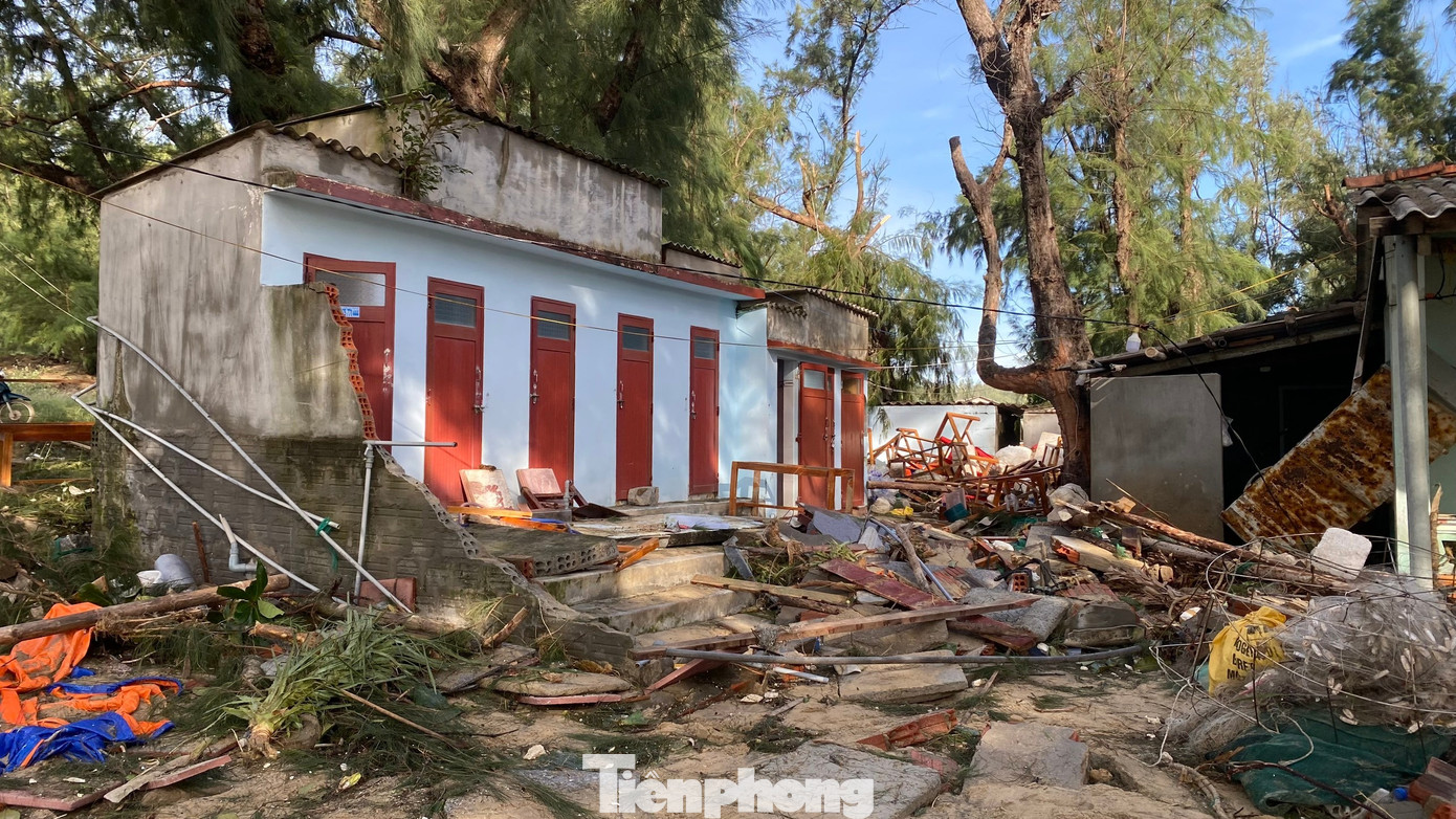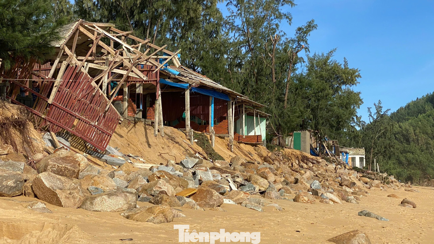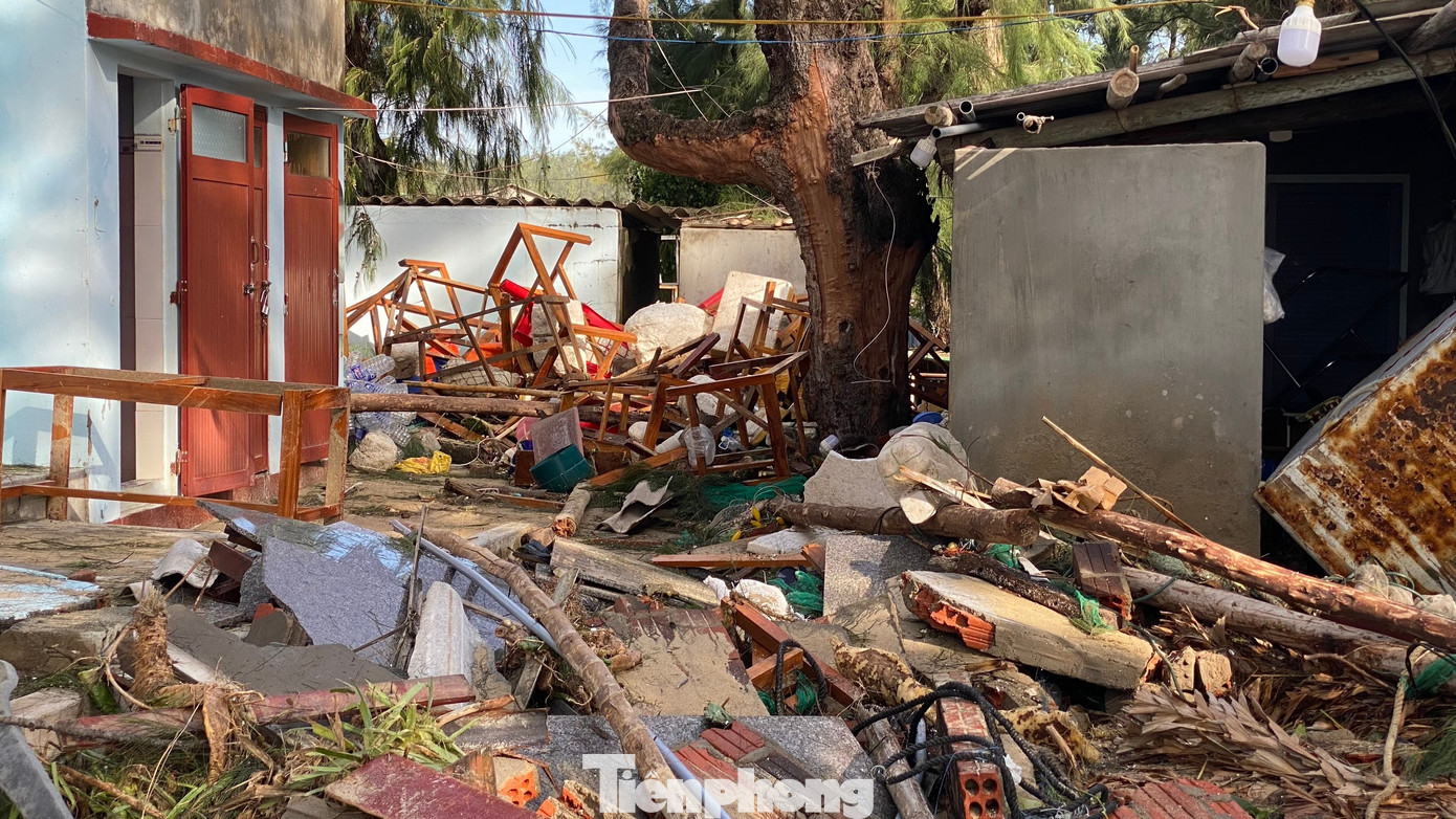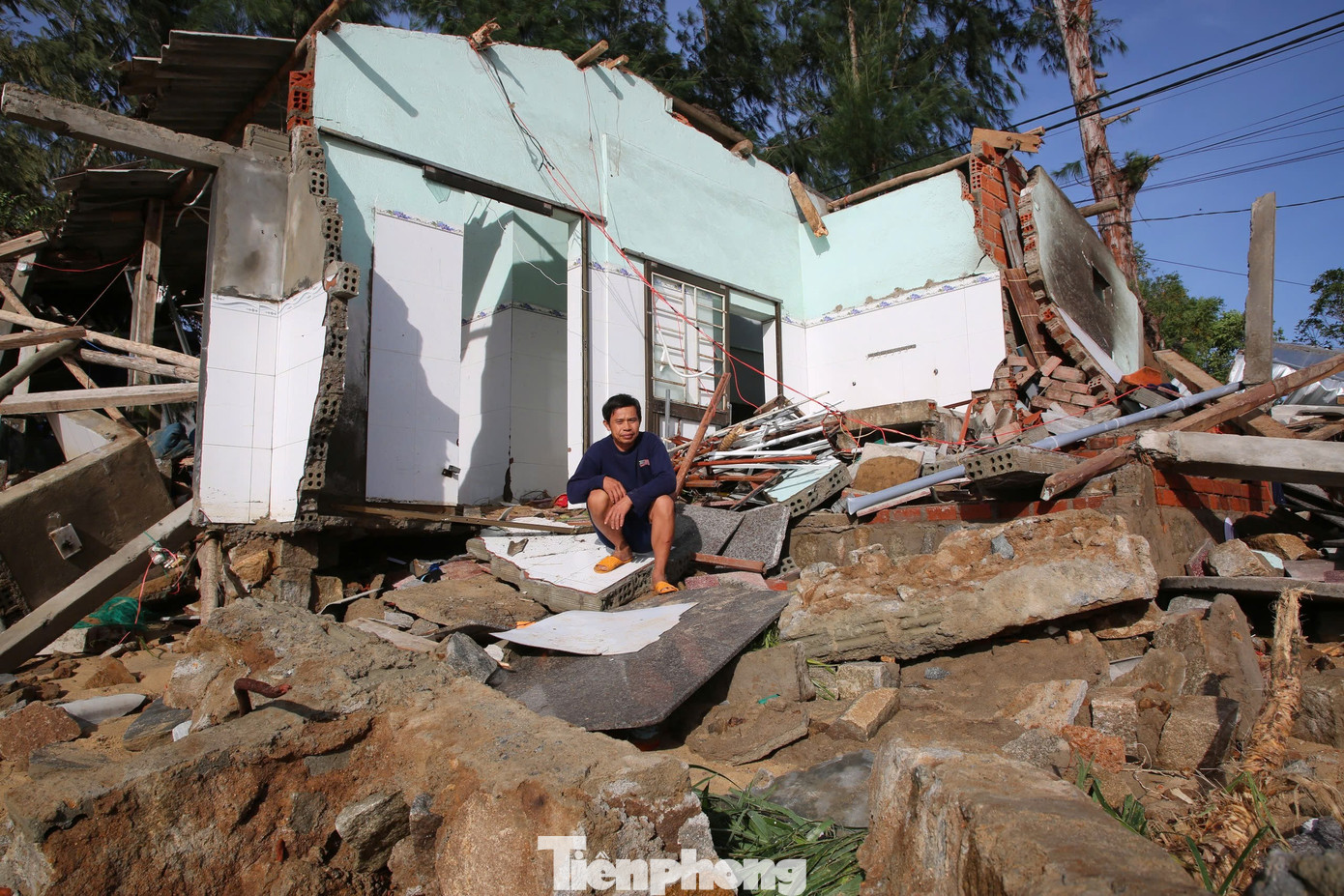 Sau những cơn triều dữ, dọc bờ biển ở phường Sa Huỳnh chỉ còn lại cảnh hoang tàn, đổ nát.