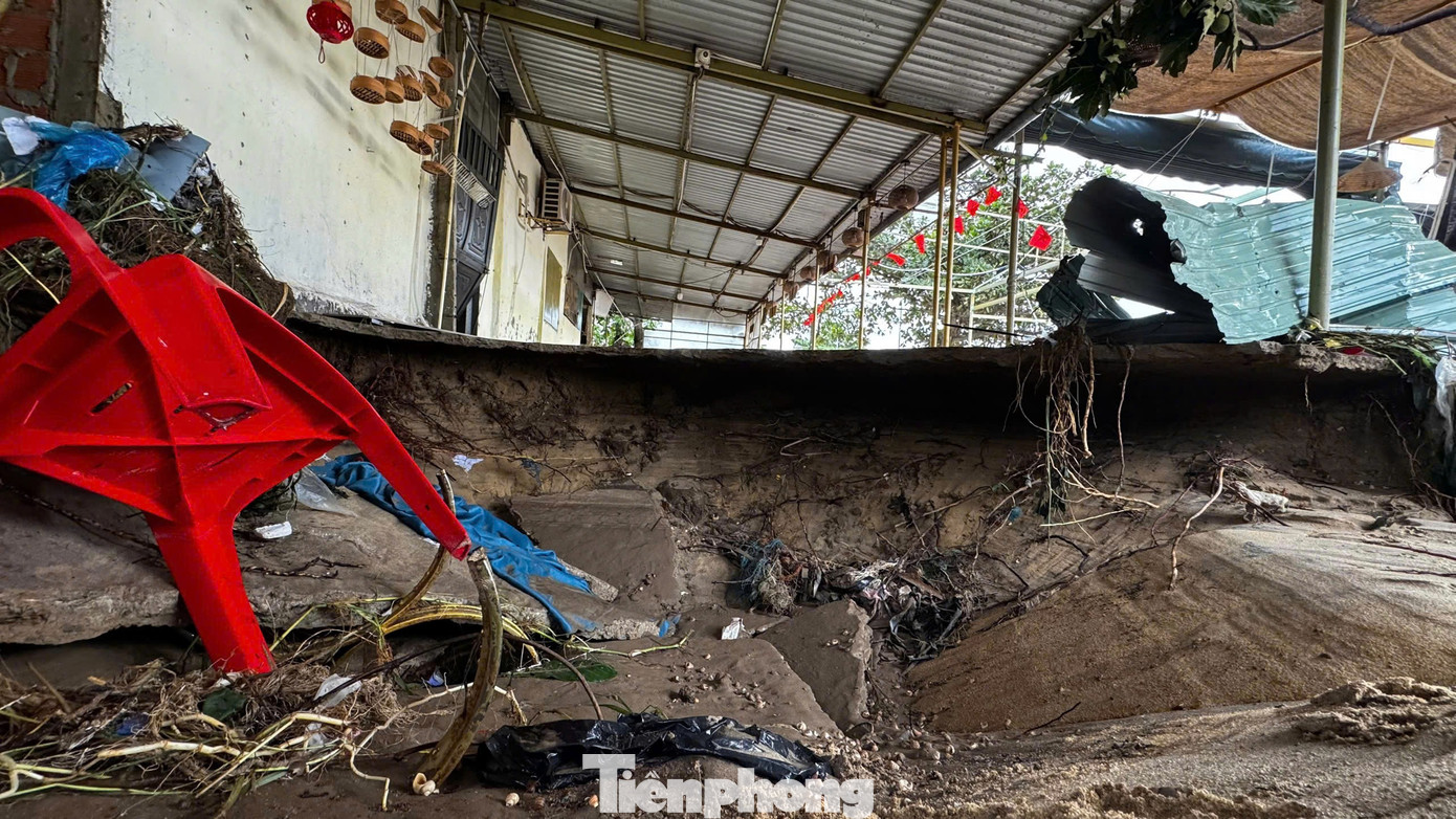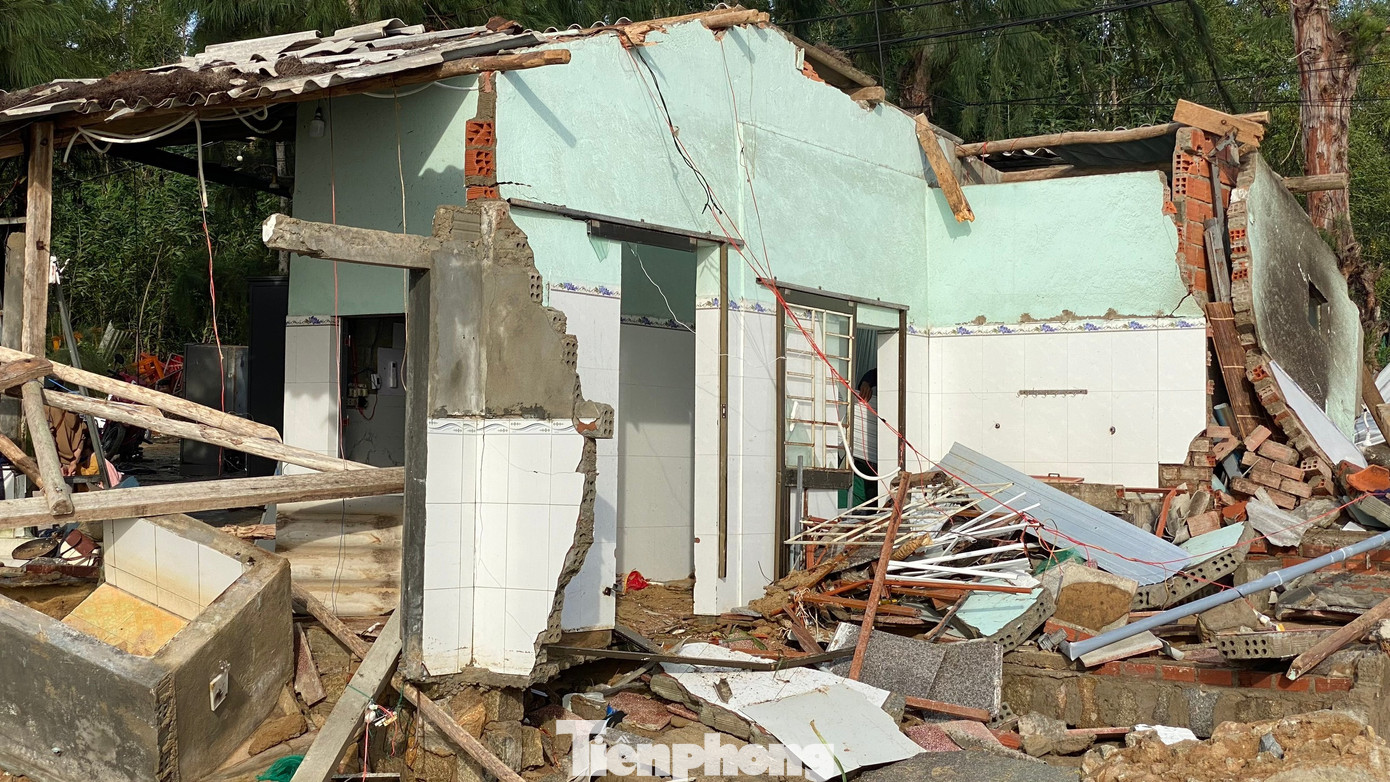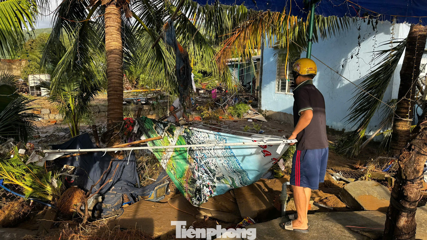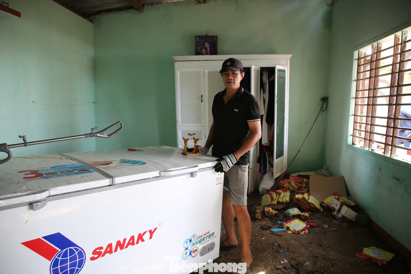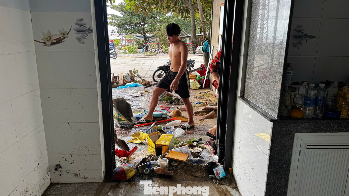 Cách đó không xa, chị Trần Thị Thu Thủy (36 tuổi, trú tổ dân phố Thạch By 2) lặng lẽ nhặt nhạnh vài vật dụng còn sót lại giữa đống đổ nát. Căn nhà được chằng chống kiên cố trước bão nhưng vẫn không chịu nổi sức tấn công dữ dội của triều cường.
