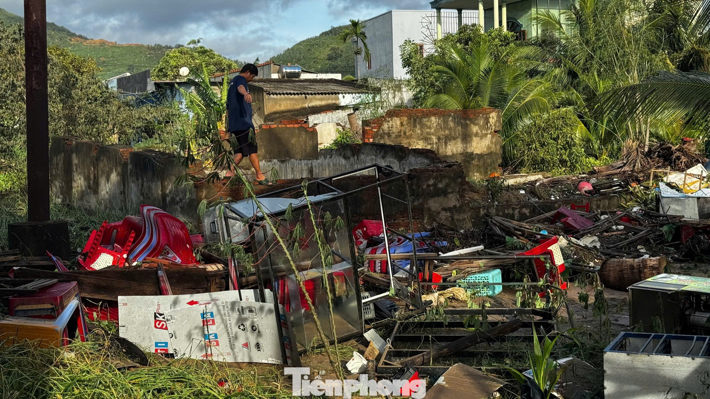Mái tôn, gỗ, bàn ghế, tủ lạnh trôi lềnh bềnh. Người dân lặng người giữa những gì còn sót lại.Sau đêm bão, sóng biển đã lấy đi tất cả.