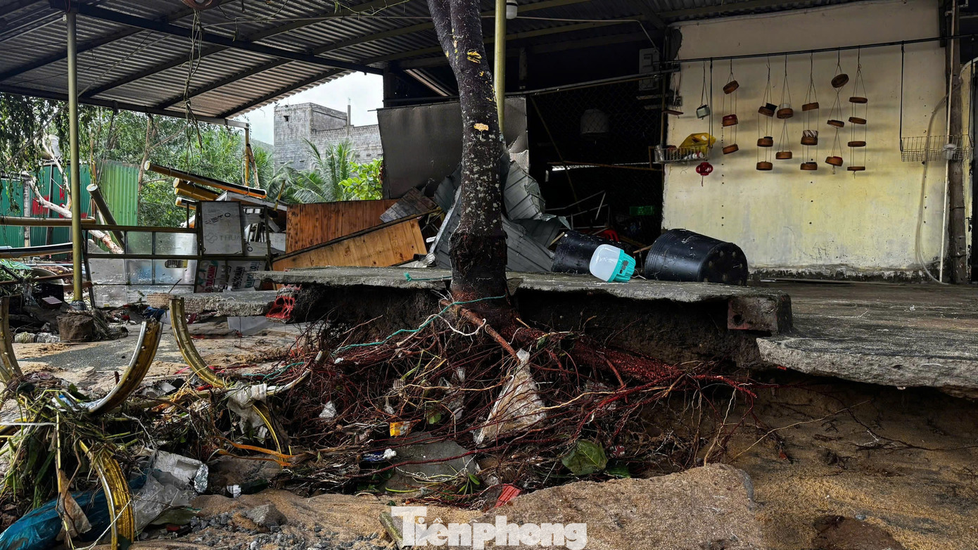 Tại tổ dân phố Châu Me (phường Sa Huỳnh), hàng quán dù cách mép biển cả trăm mét cũng bị sóng đánh sập.