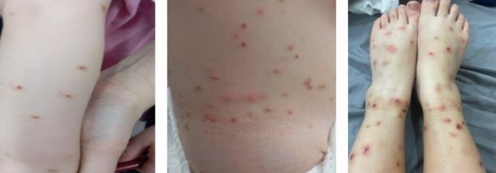 Theo BSCKII. Quách Thị Hà Giang, Bệnh viện Da liễu Trung ương, biểu hiện thương tổn của bệnh là các sẩn huyết thanh, kích thước 1-2mm, gờ cao hơn mặt da, đỉnh chóp sẩn có mụn nước nhỏ, rất ngứa. Những trường hợp phản ứng mạnh có thể thấy hiện tượng viêm tấy đỏ lan tỏa xung quanh sẩn, chủ yếu ở phần da hở.