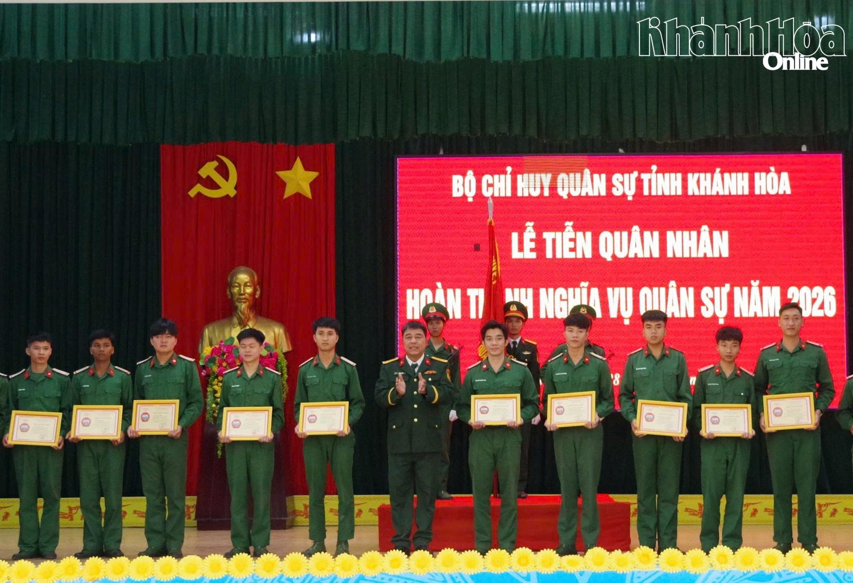 Ngày 28-1, tại Trung đoàn Bộ binh 896 và Trung đoàn Bộ binh 974, Bộ Chỉ huy Quân sự (CHQS) tỉnh Khánh Hòa tổ chức lễ tiễn 344 quân nhân hoàn thành nghĩa vụ quân sự, xuất ngũ năm 2026. Tham dự buổi lễ có Đại tá Trần Tấn Cường - Phó Chỉ huy trưởng Bộ CHQS tỉnh.