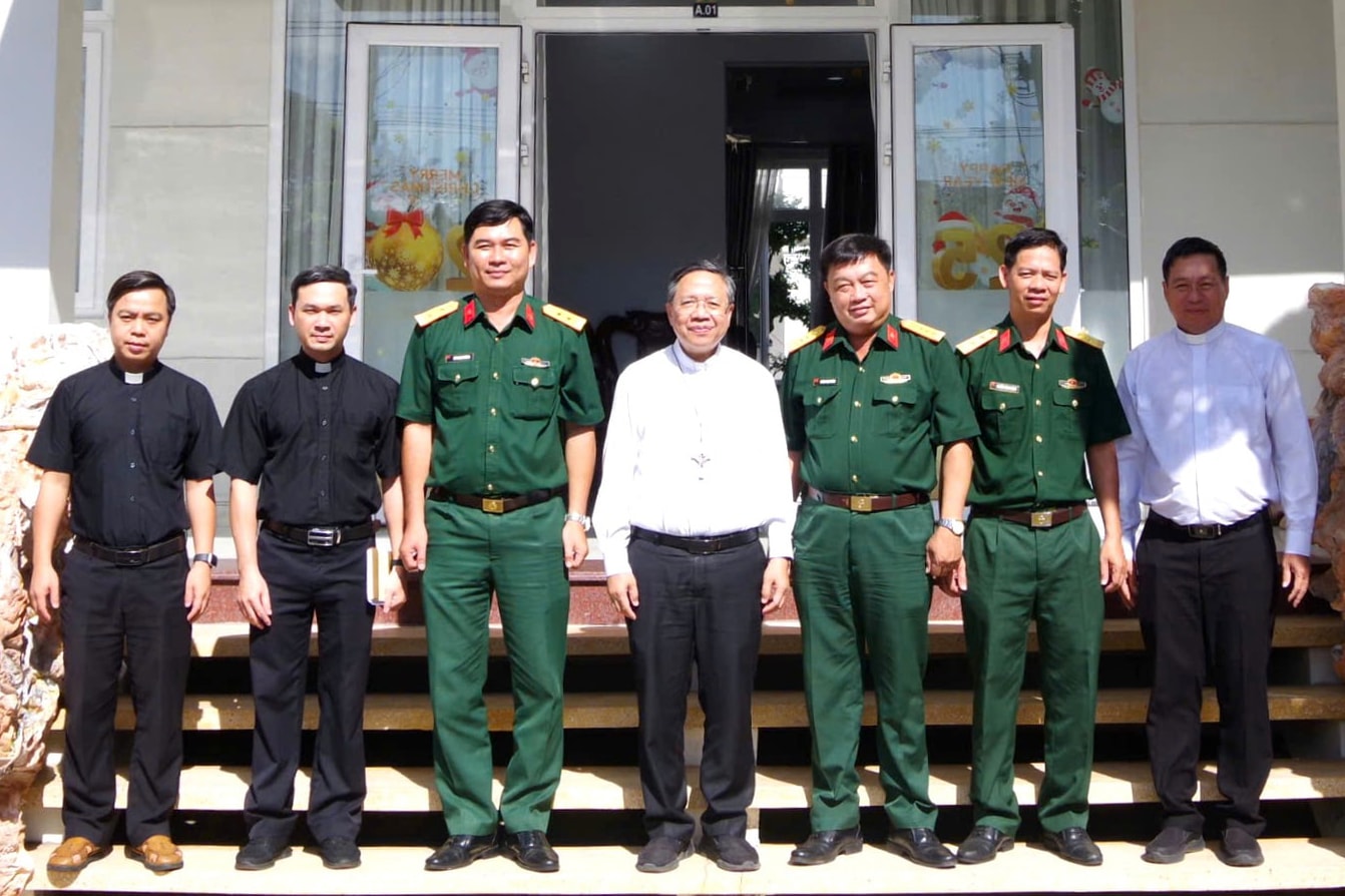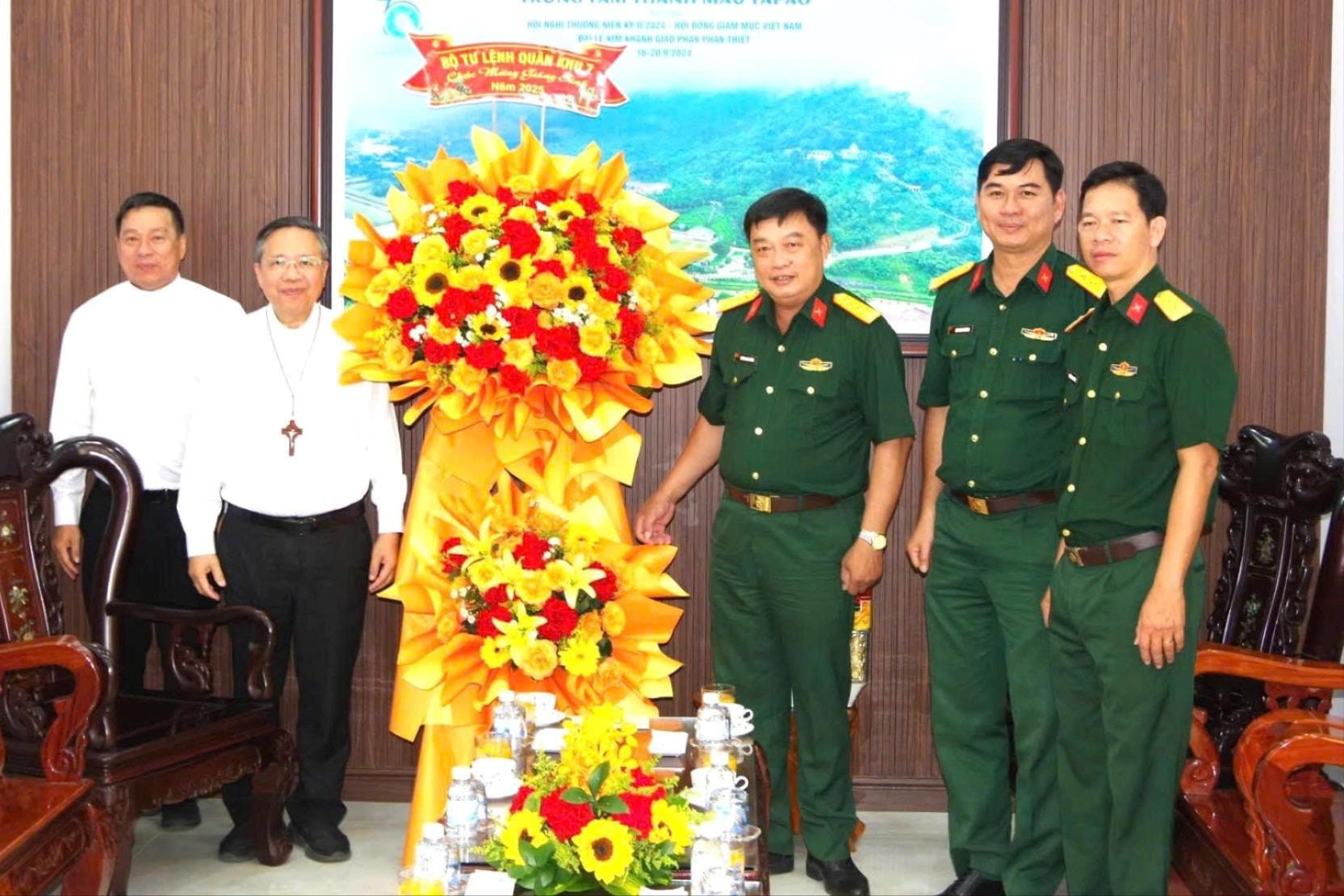 Phó Chỉ huy trưởng Bộ CHQS tỉnh, thành viên trong đoàn thăm, chúc mừng Tòa Giám mục Phan Thiết nhân dịp Giáng sinh năm 2025
