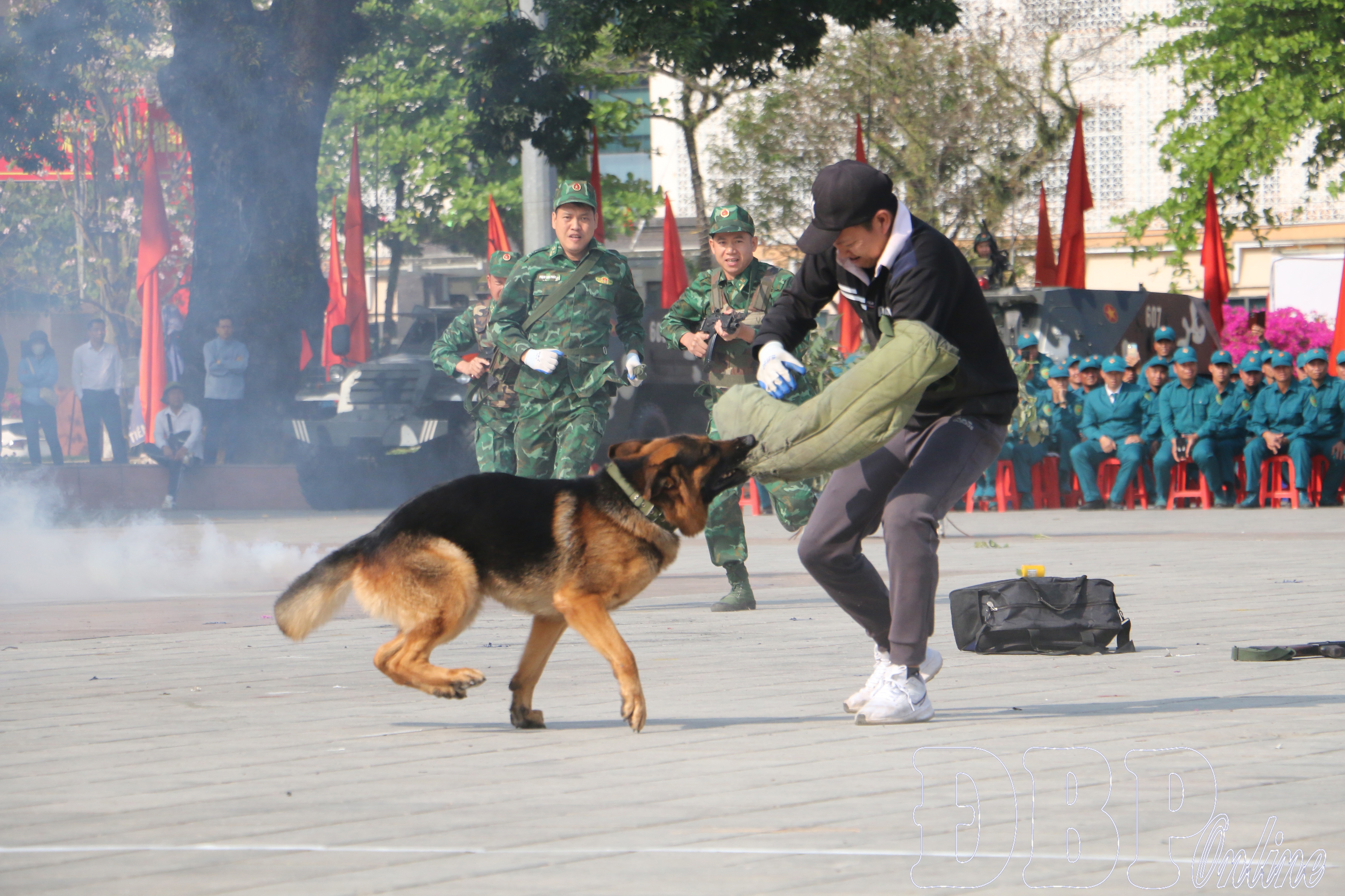 Chó nghiệp vụ của bộ đội biên phòng tham gia trình diễn tại Lễ ra quân huấn luyện.