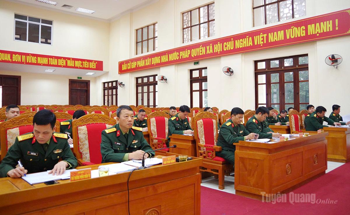 Phát biểu kết luận hội nghị, Đại tá Đào Toàn Thắng biểu dương các cơ quan, đơn vị đã đoàn kết, trách nhiệm, phối hợp chặt chẽ với cấp ủy, chính quyền địa phương trên địa bàn đã hoàn thành tốt nhiệm vụ công tác tuyển quân năm 2026. Đồng chí Tham mưu trưởng đề nghị năm 2027 và các năm tiếp theo các cơ quan đơn vị cần nghiêm túc rút kinh nghiệm những điểm còn tồn tại, hạn chế, bất cập trong công tác tuyển chọn và gọi công dân nhập ngũ và công tác chuẩn bị, thực hành tổ chức Lễ giao, nhận quân; tiếp tục phối hợp với cấp ủy, chính quyền địa phương và Hội đồng nghĩa vụ Quân sự các cấp trong việc lãnh đạo, chỉ đạo, phối hợp chặt chẽ với các đơn vị nhận quân nắm chắc tình hình tư tưởng của chiến sĩ mới nhập ngũ về đơn vị, khám, phúc tra sức khỏe cho chiến sĩ mới, kịp thời bù đổi theo đúng quy định bảo đảm an toàn tuyệt đối.