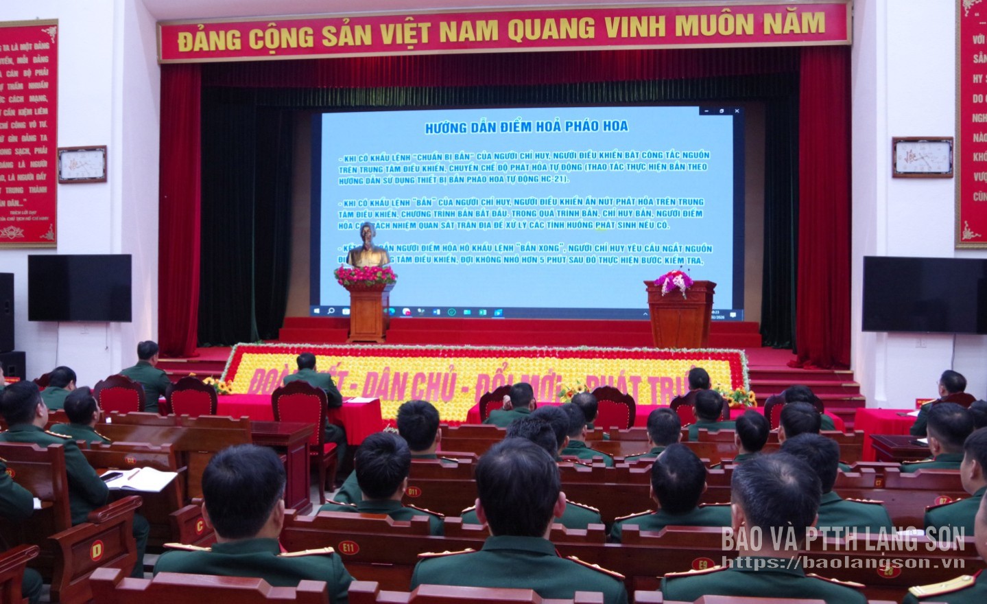 Trong đó tập trung vào việc quán triệt các văn bản chỉ đạo của cấp trên về công tác quản lý, sử dụng, quy trình kỹ thuật, thao tác lắp đặt, vận hành hệ thống bắn pháo hoa; các biện pháp bảo đảm an toàn về người, vũ khí trang bị, phòng cháy chữa cháy và xử lý các tình huống có thể xảy ra trong quá trình thực hiện nhiệm vụ.