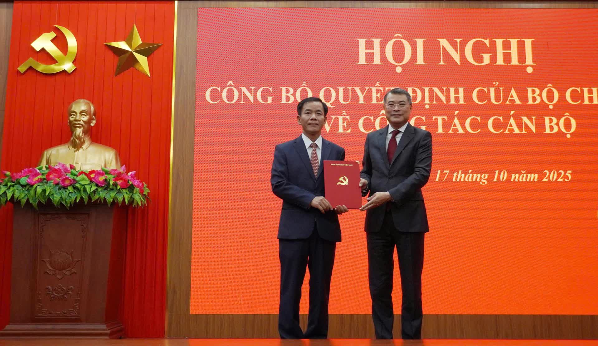 Đồng chí Trưởng ban Tổ chức Trung ương Lê Minh Hưng trao quyết định của Bộ Chính trị chỉ định đồng chí Nguyễn Văn Phương giữ chức Bí thư Tỉnh ủy Quảng Trị nhiệm kỳ 2025-2030.