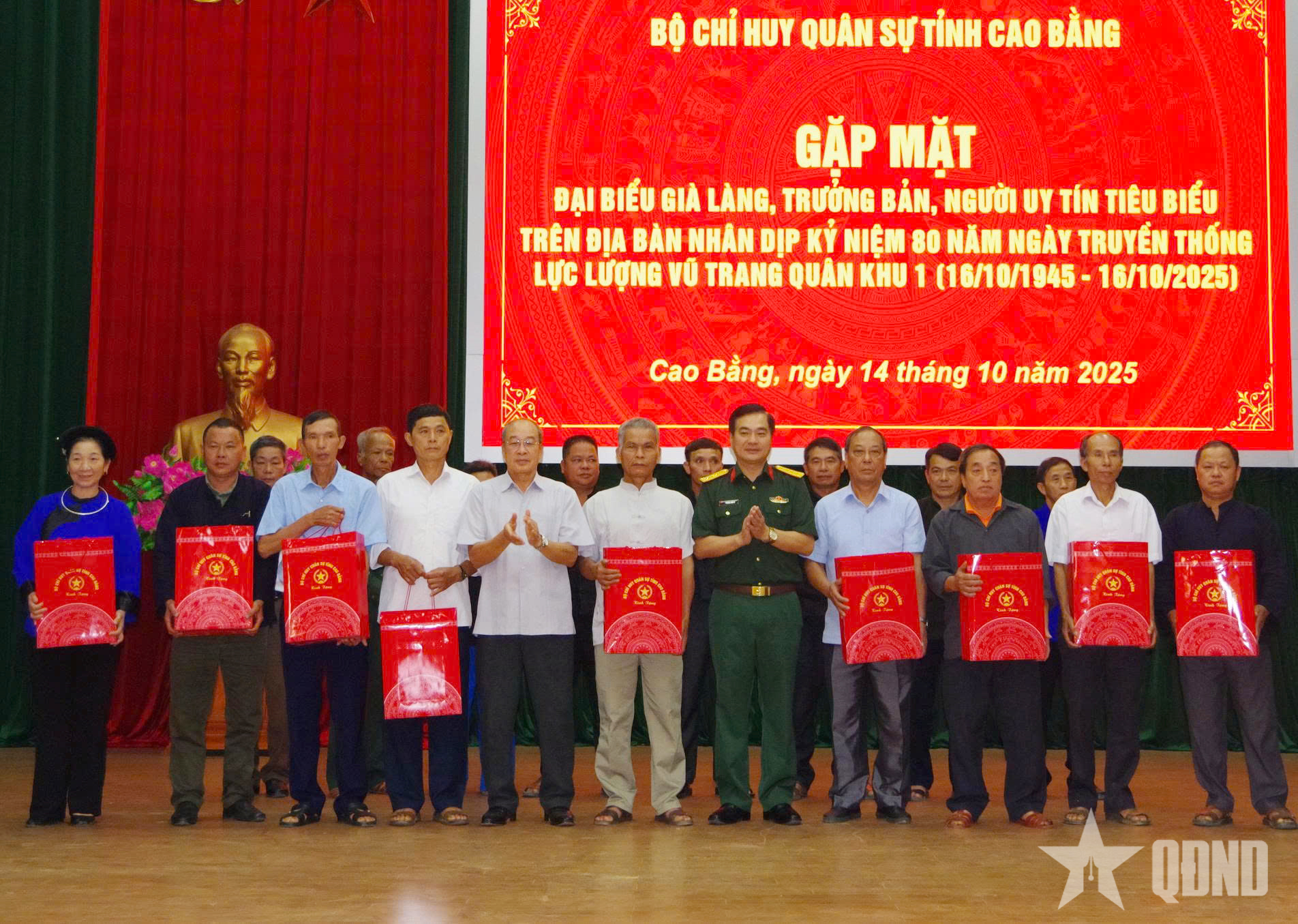 Dự buổi gặp mặt có Đại tá Phương Nam Ký, Phó bí thư Thường trực Đảng ủy Quân sự tỉnh, Chính ủy Bộ CHQS tỉnh Cao Bằng; lãnh đạo một số ban, ngành của tỉnh; 60 đại biểu tiêu biểu đại diện hơn 1.450 già làng, trưởng bản, người có uy tín trên địa bàn tỉnh.
