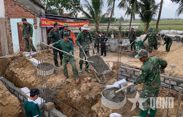 Bộ đội xây nhà cho dân tại phường Đông Hòa, tỉnh Đắk Lắk.