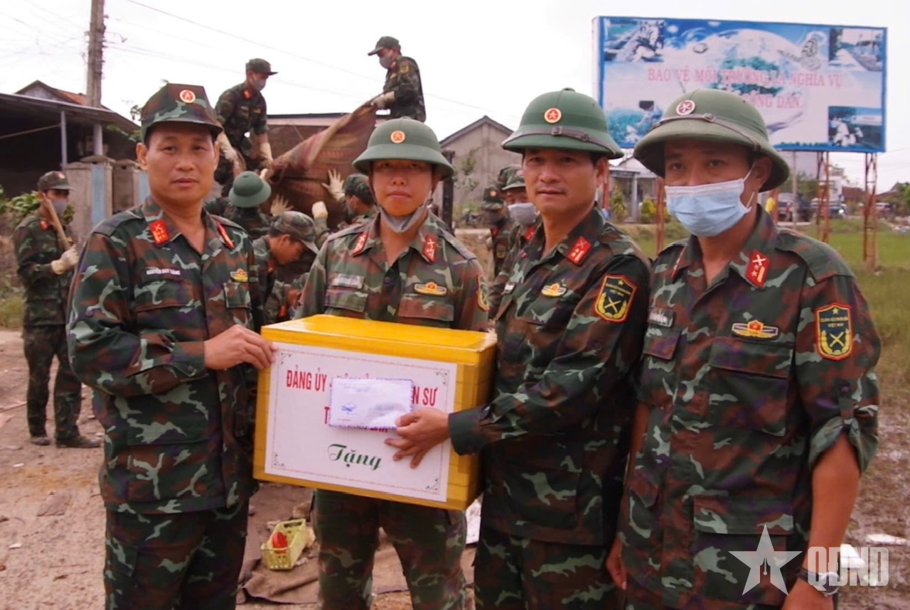 Thay mặt Đảng ủy, Bộ CHQS tỉnh Đắk Lắk, Đại tá Nguyễn Duy Tráng gửi lời thăm hỏi, trao các phần quà hỗ trợ và động viên bộ đội giữ gìn sức khỏe, duy trì quyết tâm, đoàn kết, hoàn thành tốt mọi phần việc được giao. Hiện tại, Bộ CHQS tỉnh Đắk Lắk đang tiếp tục huy động tối đa lực lượng và phương tiện, phấn đấu hoàn thành dọn dẹp các tuyến đường giao thông, vệ sinh trường học, giúp dân sửa sang nhà cửa, góp phần ổn định cuộc sống của nhân dân xã Hòa Thịnh sau cơn lũ dữ.