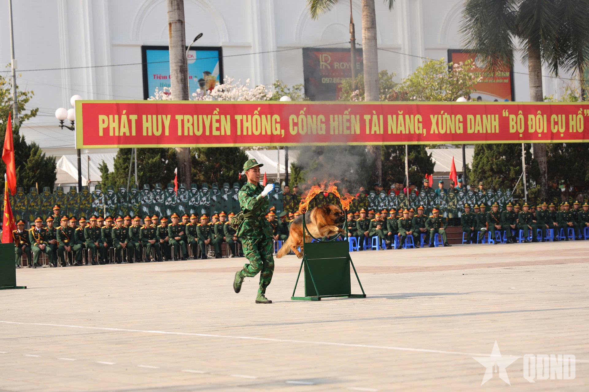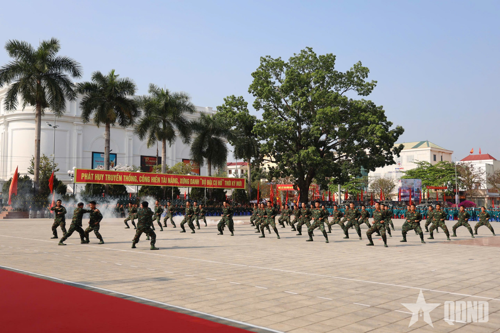 Cán bộ, chiến sĩ trình diễn võ thuật.
