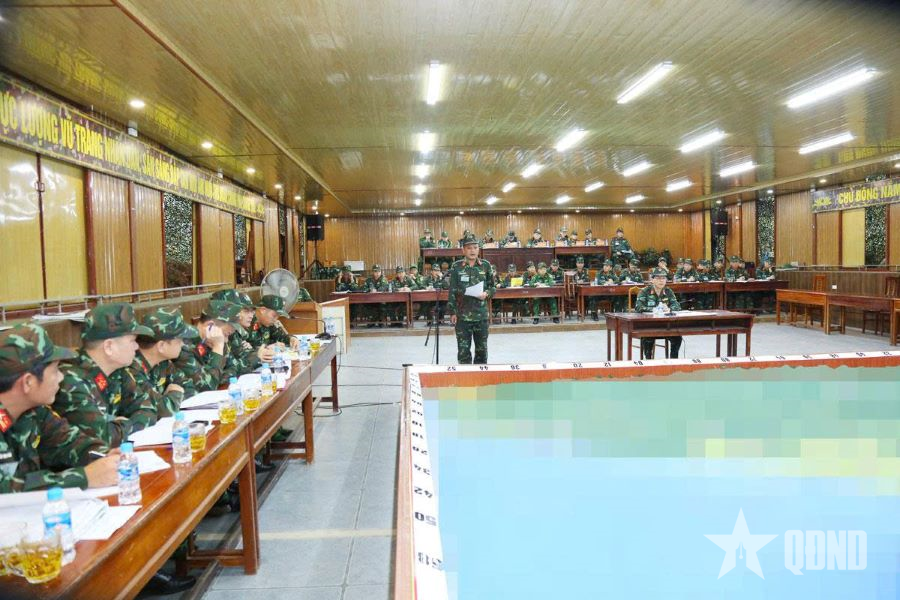 Quang cảnh khung tập tổ chức Hội nghị thông qua quyết tâm tác chiến phòng thủ (điều chỉnh) và ra nghị quyết lãnh đạo nhiệm vụ tác chiến phòng thủ.