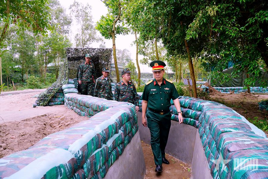 Đại tá Vũ Văn Định, Ủy viên Ban Thường vụ Tỉnh ủy, Chỉ huy trưởng Bộ CHQS tỉnh Hưng Yên kiểm tra công tác chuẩn bị sở chỉ huy tại khu căn cứ chiến đấu.