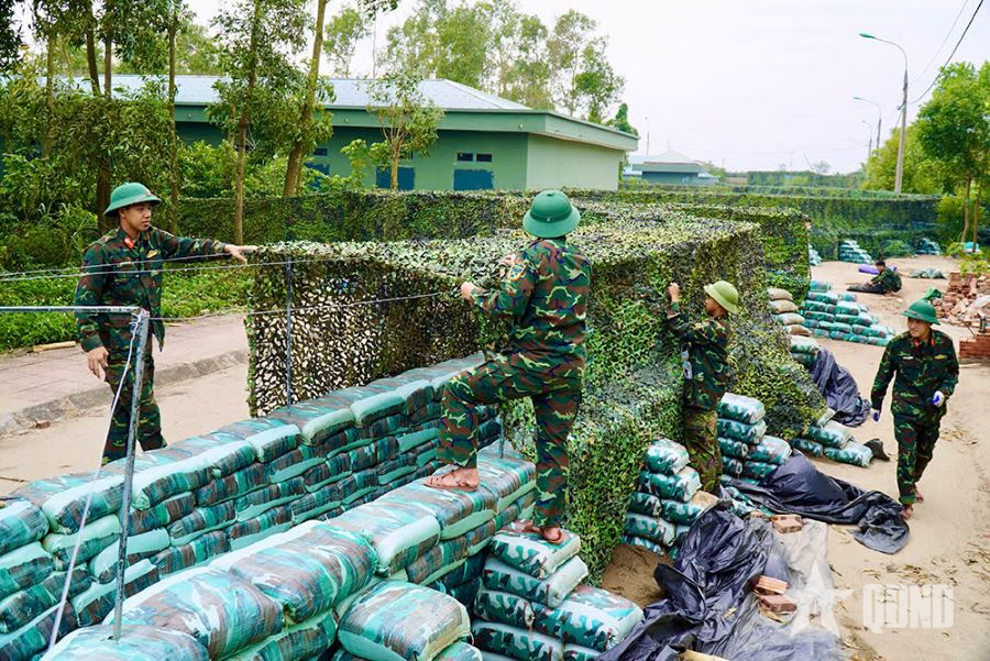 Cán bộ, chiến sĩ LLVT tỉnh Hưng Yên tích cực hoàn thiện thao trường diễn tập.