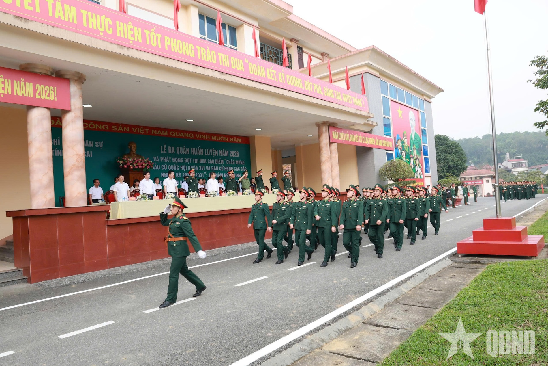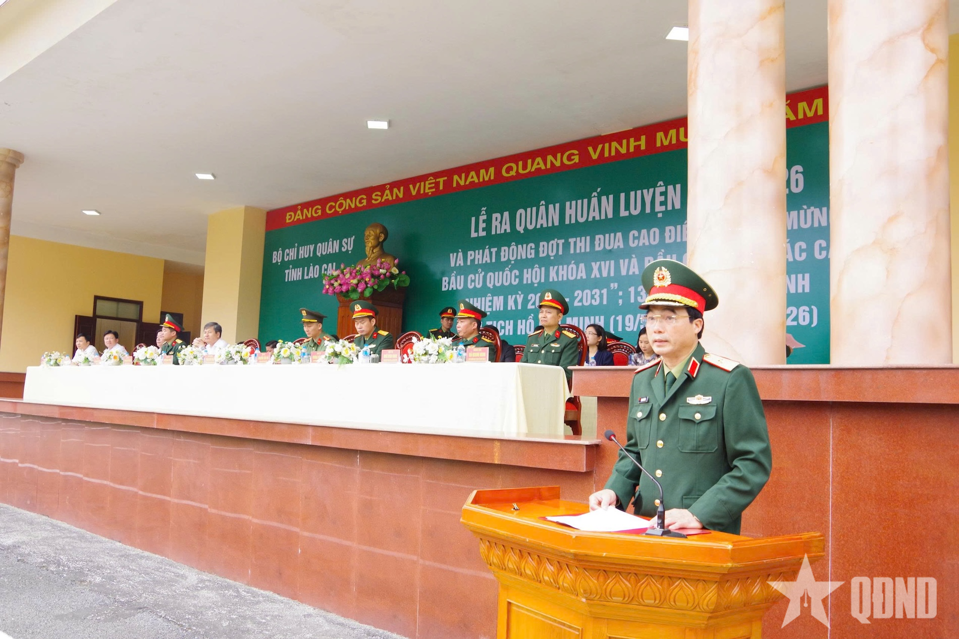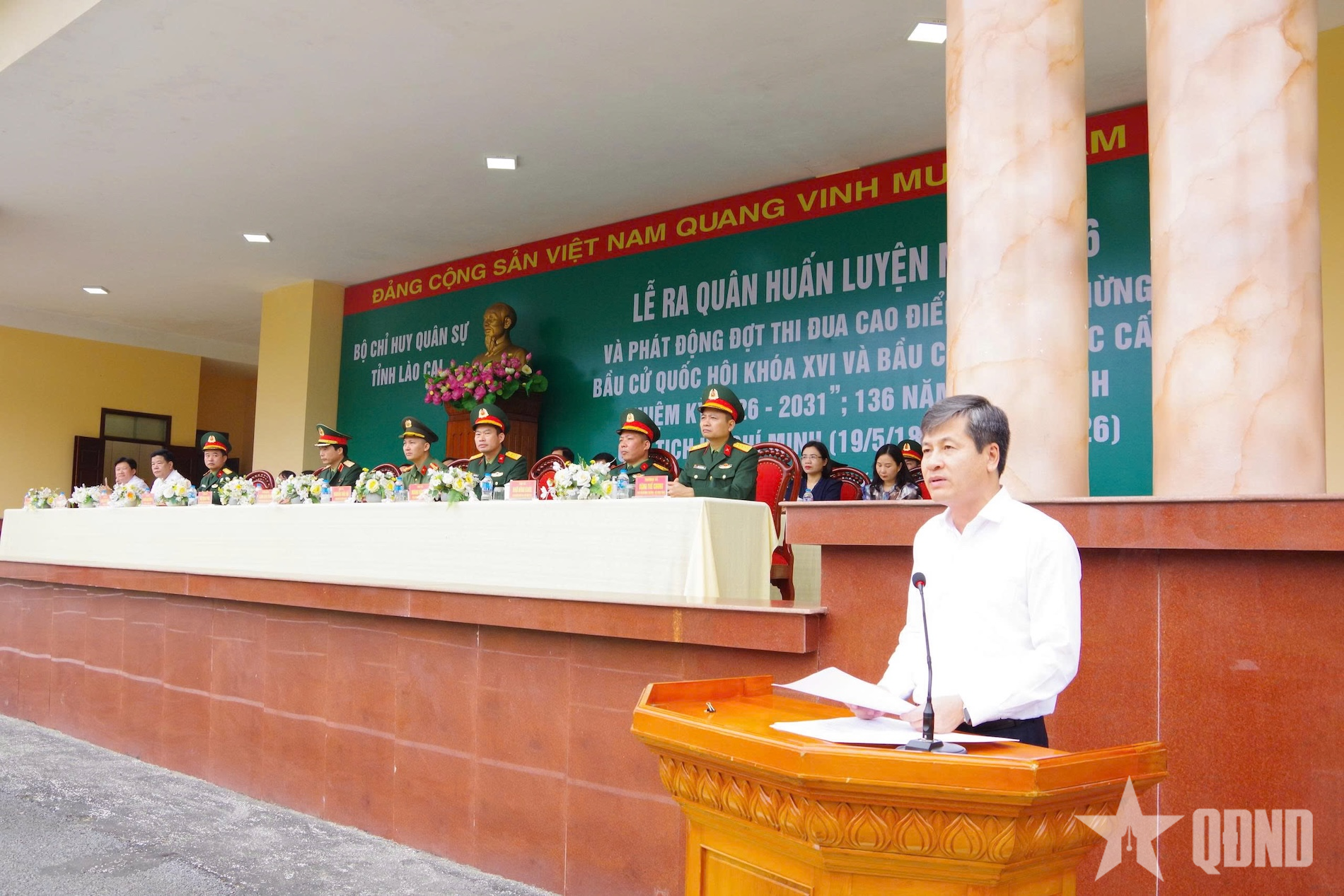 Cũng tại buổi lễ, Bộ CHQS tỉnh Lào Cai đã phát động đợt thi đua cao điểm với chủ đề: “Chào mừng bầu cử đại biểu Quốc hội khóa XVI và bầu cử đại biểu HĐND các cấp, nhiệm kỳ 2026-2031; 136 năm Ngày sinh Chủ tịch Hồ Chí Minh (19-5-1890 / 19-5-2026)”.