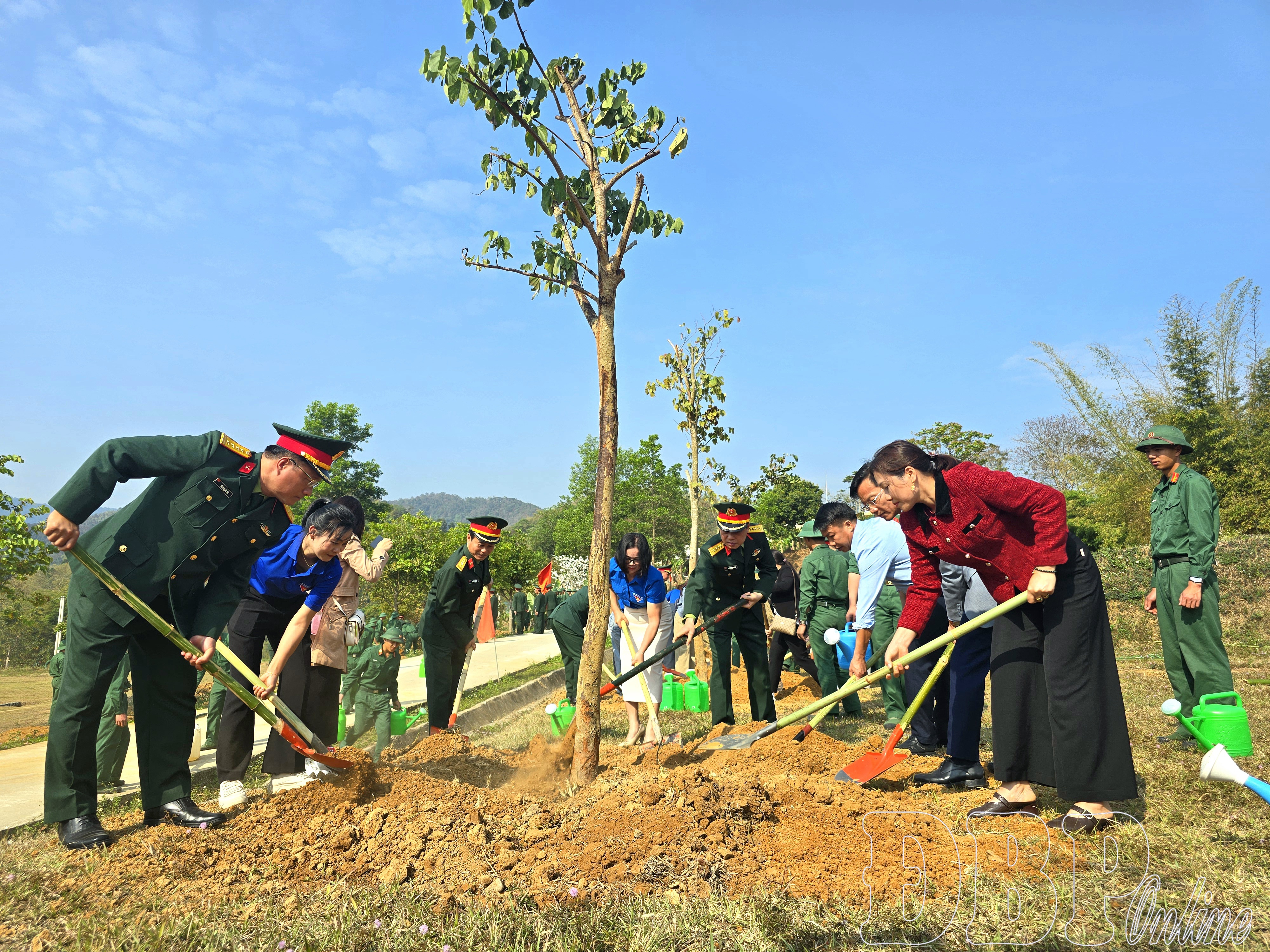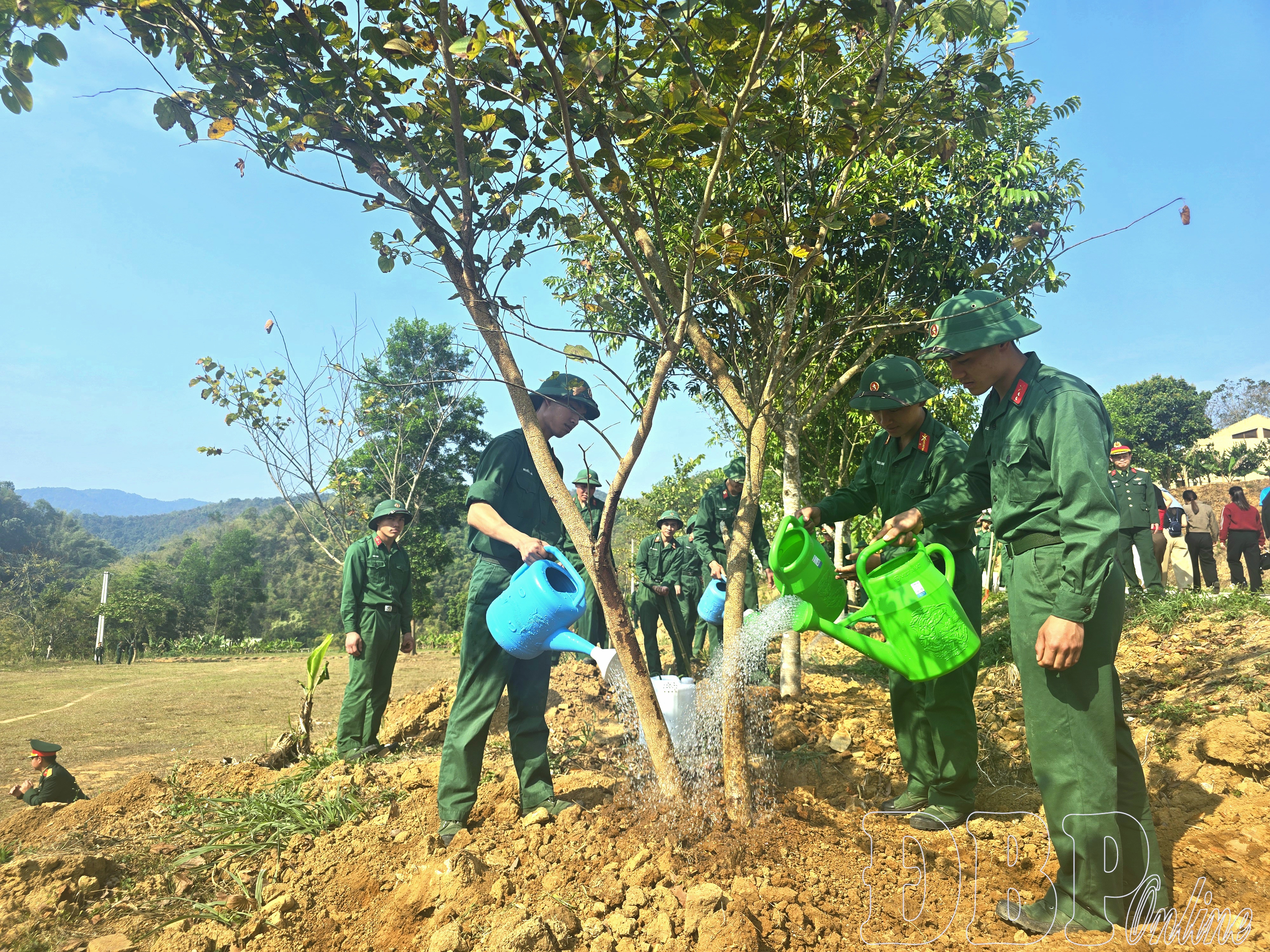 Ngay sau lễ phát động “Tết trồng cây đời đời nhớ ơn Bác Hồ”, đại biểu, cán bộ, chiến sĩ cơ quan Bộ CHQS tỉnh đã tổ chức trồng hơn 60 cây ban, gần 300 cây lấy gỗ, cây ăn quả, cây bóng mát (giáng hương, sấu, xà cừ, lim xanh, keo tai tượng…) tại khu vực thao trường huấn luyện, khuôn viên tiểu đoàn, cơ quan Bộ CHQS tỉnh.