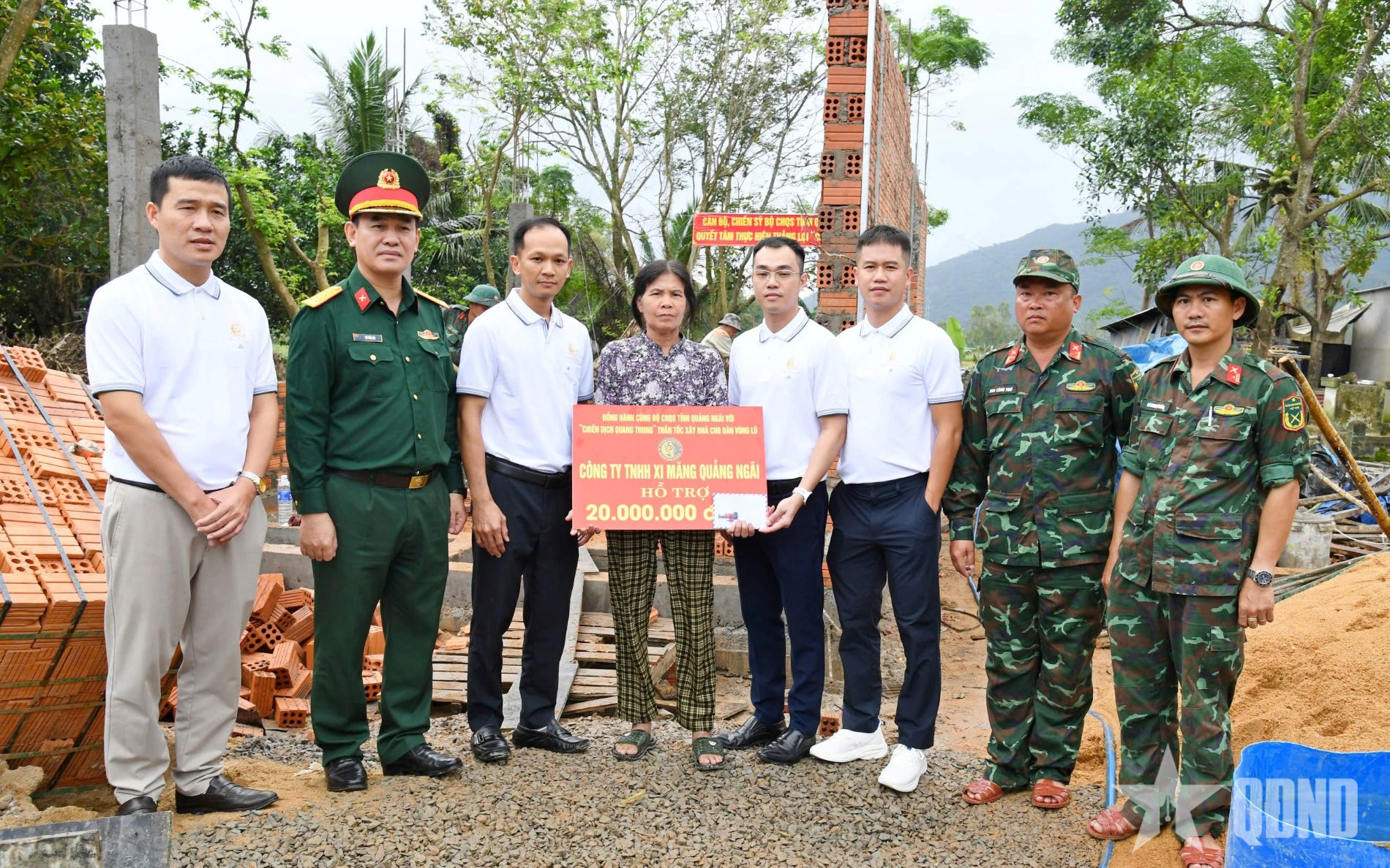 Để bảo đảm tiến độ hoàn thành nhà ở theo kế hoạch trước ngày 31-1-2026, Bộ CHQS tỉnh Quảng Ngãi đã chủ động phối hợp với địa phương, các đơn vị liên quan điều tiết vật tư, huy động phương tiện phù hợp với điều kiện địa hình. Bên cạnh kinh phí hỗ trợ 170 triệu đồng mỗi căn, Bộ CHQS tỉnh kêu gọi các nguồn lực xã hội hóa hỗ trợ 100 triệu đồng và góp 22.000 viên gạch nhằm hỗ trợ thêm cho các hộ dân xây dựng nhà kiên cố, bền vững.
