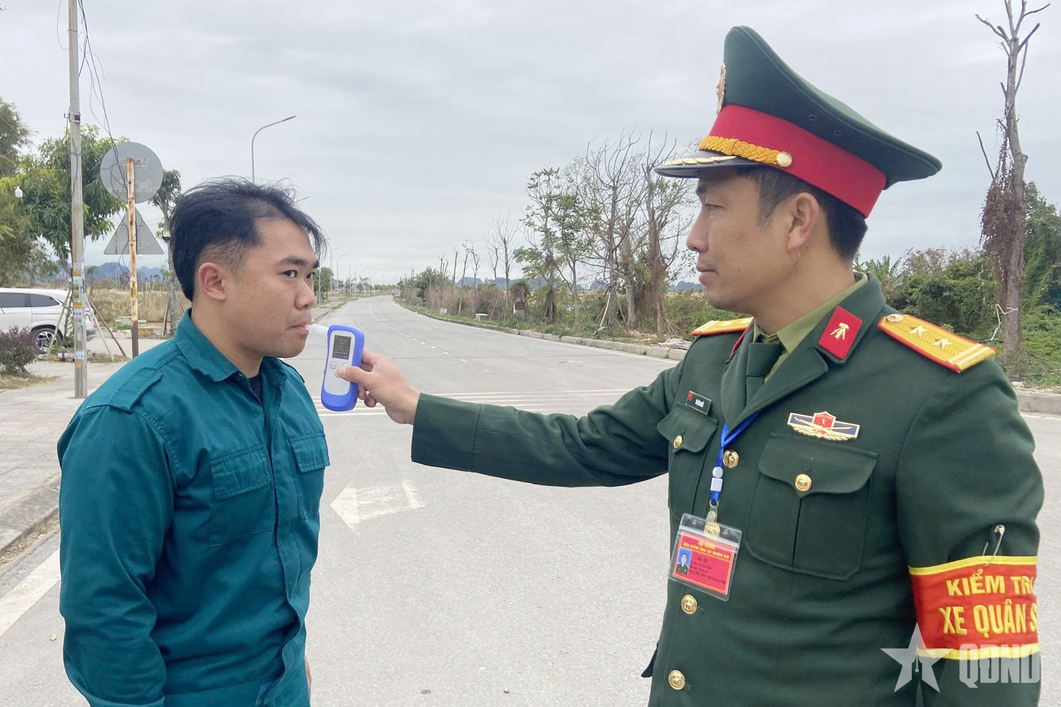 Kiểm tra nồng độ cồn đối với lực lượng dân quân thường trực của đi thực hiện nhiệm vụ.
