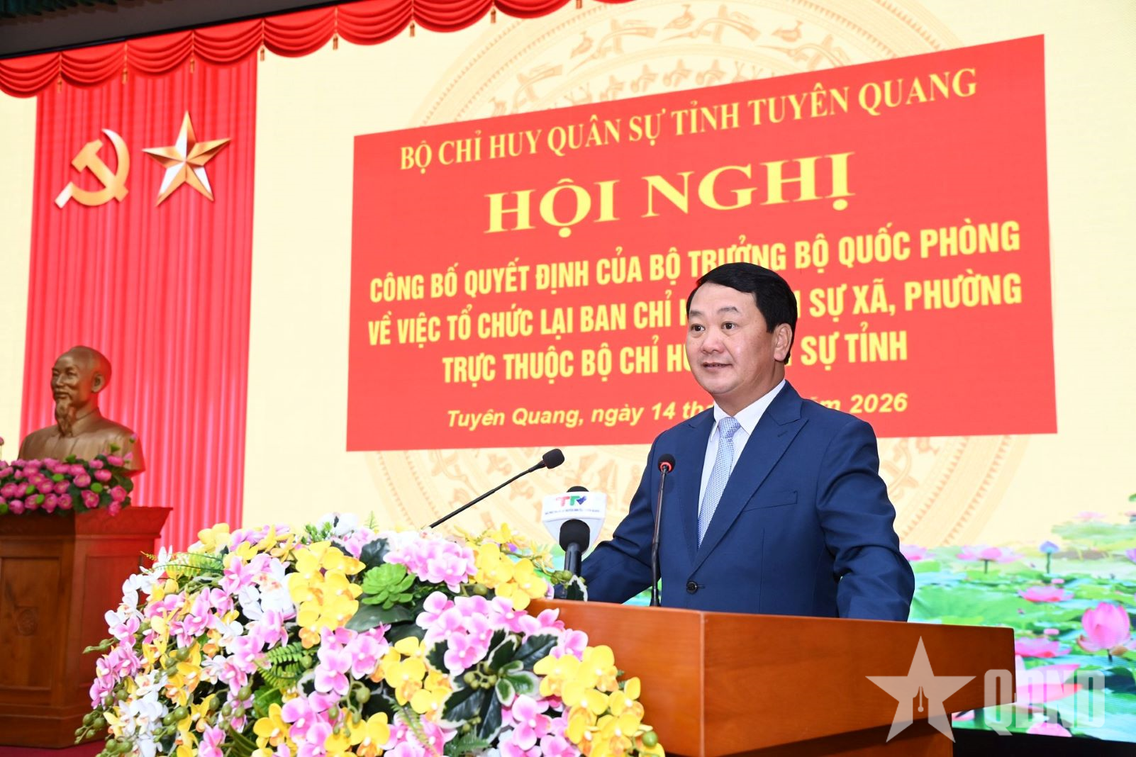 Tại hội nghị, các đại biểu đã nghe công bố quyết định của Bộ trưởng Bộ Quốc phòng, Bộ Tổng Tham mưu về việc tổ chức lại và ban hành biểu tổ chức, biên chế Ban CHQS xã, phường trực thuộc Bộ CHQS tỉnh Tuyên Quang. Hội nghị cũng đã công bố và trao quyết định của Quân khu 2 về việc điều động, bổ nhiệm chức vụ, cán bộ đối với 124 đồng chí thuộc các cơ quan, đơn vị về Ban CHQS các xã, phường trên địa bàn tỉnh Tuyên Quang.