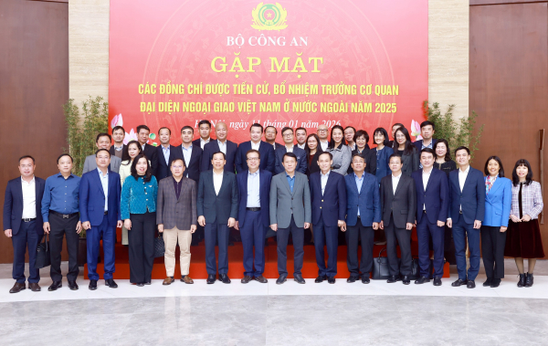 Tham dự buổi gặp mặt có đồng chí Lê Hoài Trung, Bí thư Trung ương Đảng, Bộ trưởng Bộ Ngoại giao; các đồng chí Thứ trưởng Bộ Công an, Bộ Ngoại giao; đại diện lãnh đạo các đơn vị trực thuộc hai Bộ và các đồng chí lãnh đạo được tiến cử, bổ nhiệm Đại sứ đặc mệnh toàn quyền, Tổng Lãnh sự, Trưởng cơ quan đại diện ngoại giao Việt Nam ở nước ngoài năm 2025.